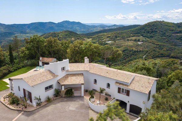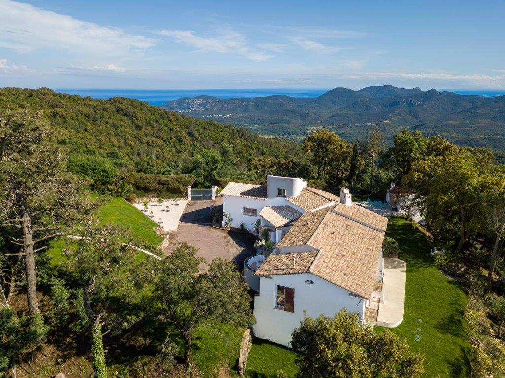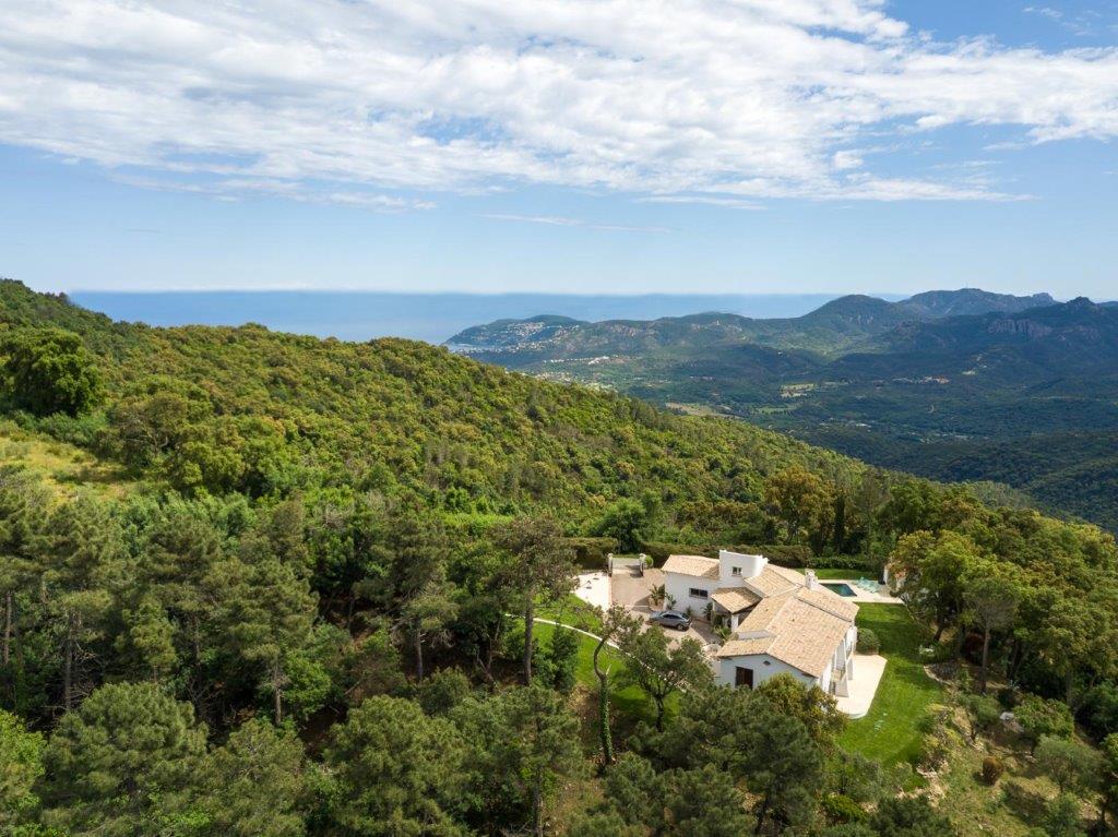 Côte d'Azur - Var: in 2025 volledig met hoogwaardige materialen gerenoveerde Provençaalse villa (5 sk, 5 bk) met fraai zwembad plus poolhouse op fenomenale plek in de natuur met panoramisch uitzicht, slechts 15 minuten van Mandelieu-la Napoule en Cannes
