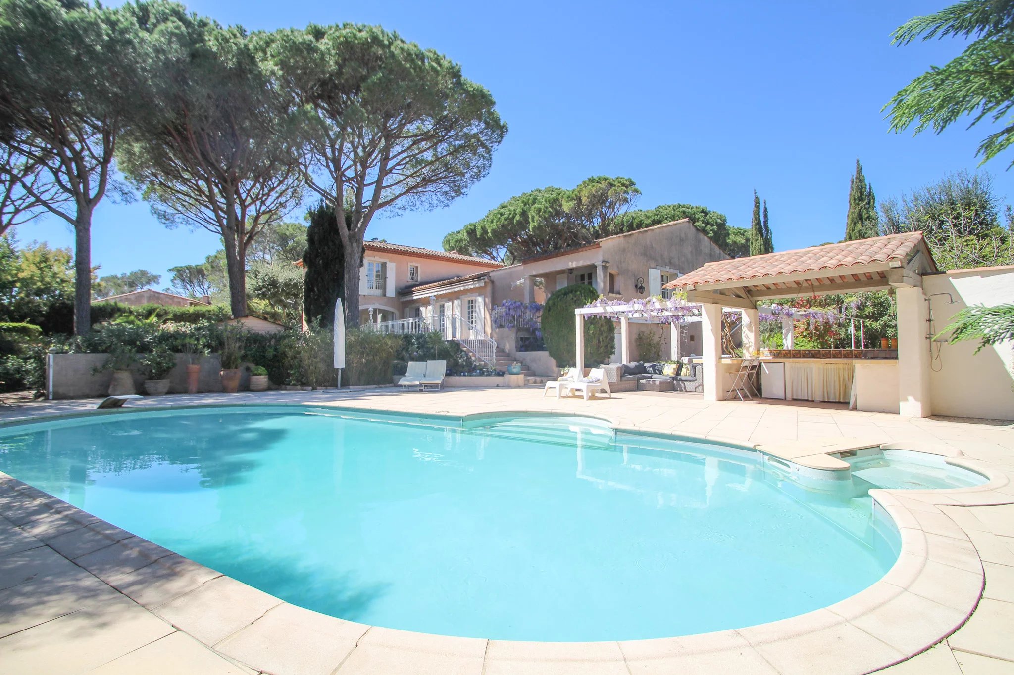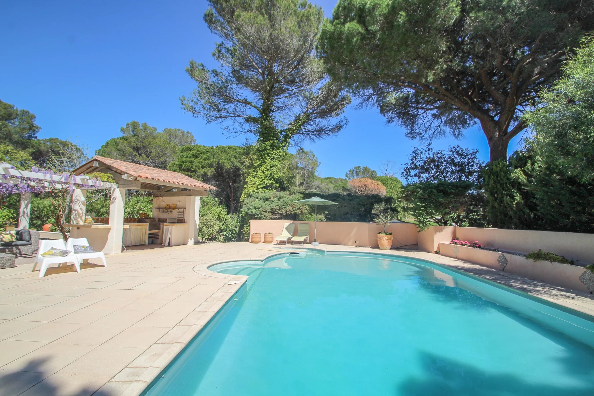 Côte d'Azur - Var: charmante Provençaalse bastide (5 sk, 4 bk), in 2002 onder architectuur gerenoveerd met behoud van karakter, gelegen op ca. 1.850 m² met prachtig zwembad en mooie oude bomen aan de golfbaan Golf de l'Estérel op korte afstand van zee