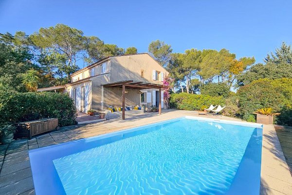 Côte d'Azur - Var: in een stijlvolle, residentiële en kalme buurt vlakbij imposante golfbaan ligt deze Provençaalse villa (4 sk, 3 bk) met gerenoveerd zwembad 10 bij 5 meter; 1.629 m² tuin op nog geen 3 kilometer van Middellandse zee met haven en strand