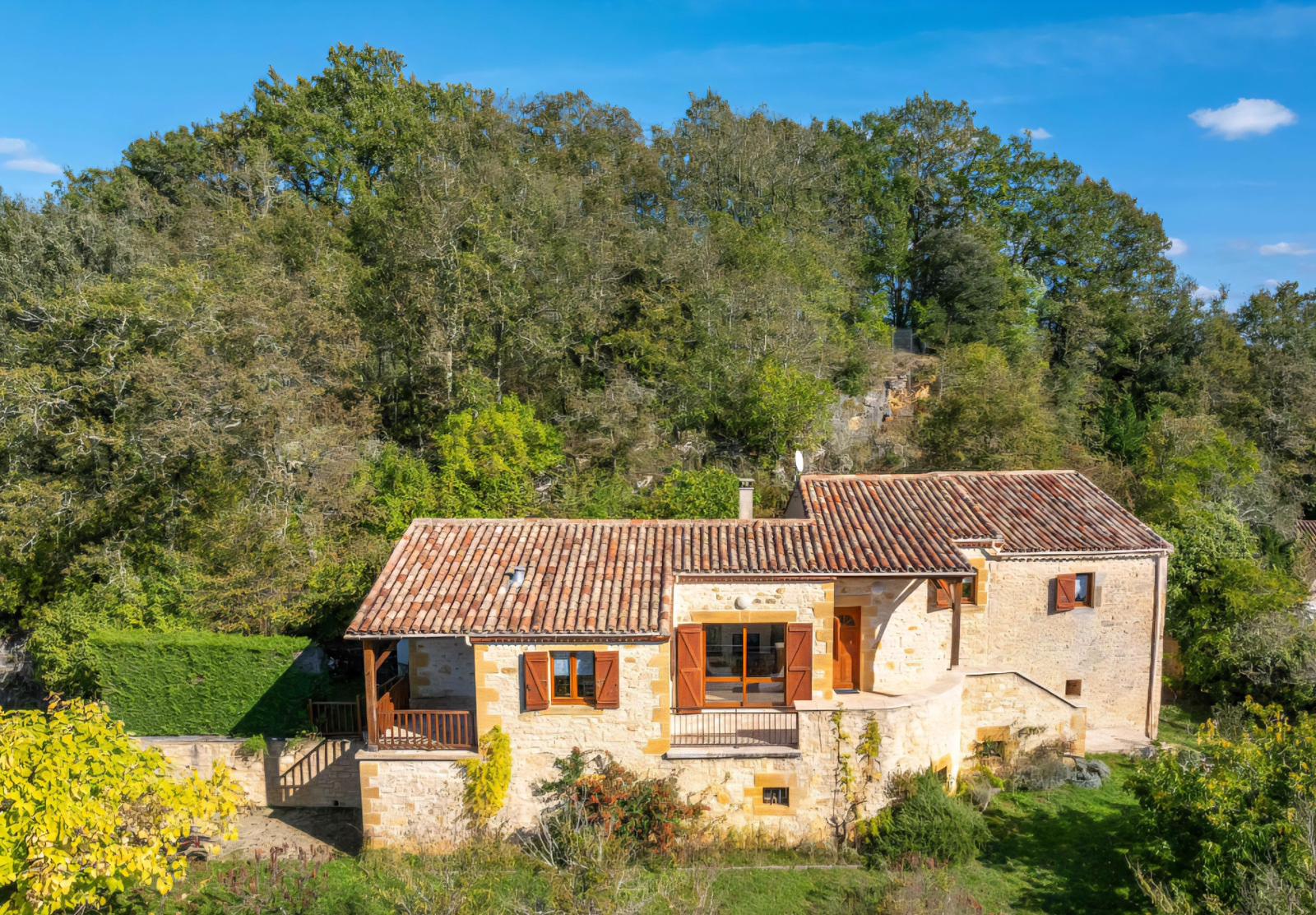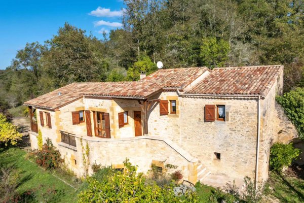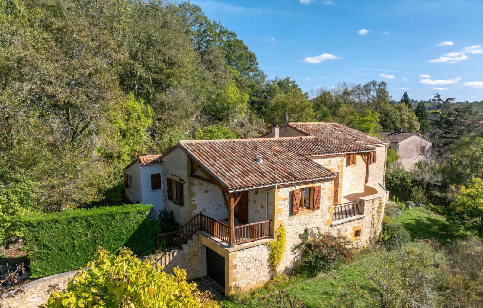 Dordogne - Lot-et-Garonne: sympathiek natuurstenen woonhuis in goede staat aan doodlopend weggetje iets buiten een pittoresk dorp in omgeving van château Biron, Monpazier en Monflanquin op 45 minuten van Bergerac; 1.963 m² grond en heerlijk open uitzicht