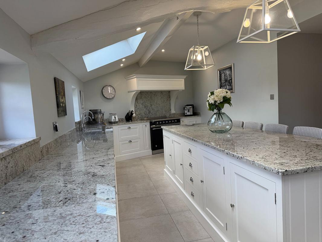 Prachtige, op maat gemaakte houten trap leidt naar de bovenverdieping, waar zich nog twee ruime slaapkamers bevinden. Een van de slaapkamers heeft een eigen ensuite badkamer en er is ook een tweede, aparte badkamer. Een apart kantoor, voorzien van dubbele beglazing en elektrische vloerverwarming, is een extra pluspunt en kan eenvoudig worden omgebouwd tot een vierde slaapkamer of gastenkamer.