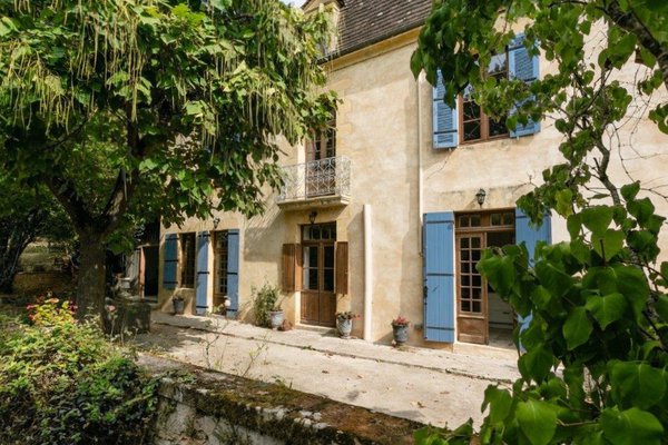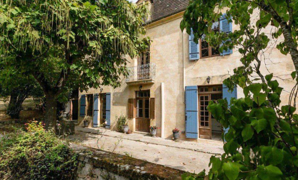 Dordogne - Périgord Noir: karakteristiek natuurstenen Périgordijns herenhuis, recentelijk geheel gerenoveerd, op locatie met 'vue château' aan de rand van één van de mooiste stadjes van de Dordogne-vallei op ca. 700 m² op loopafstand van winkels