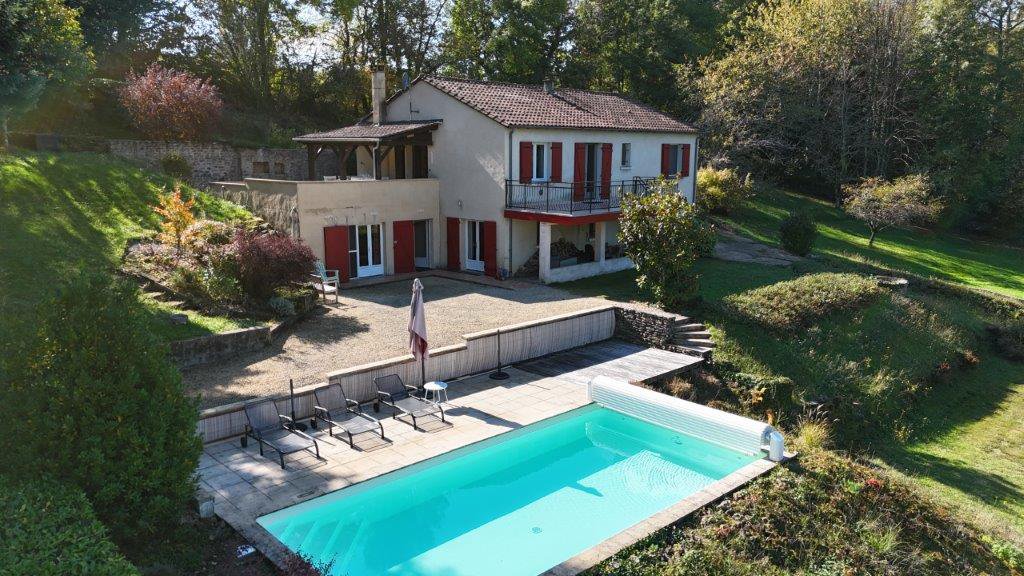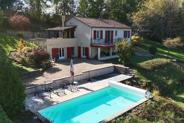 Op slechts 15 kilometer van het charmante stadje Les Eyzies-de-Tayac-Sireuil bevindt zich dit karakteristiek woonhuis in goede staat met fraai zwembad en een schitterend uitzicht over het omliggende platteland. De woning is oorspronkelijk gebouwd in 1987 en heeft een aangenaam en licht interieur.