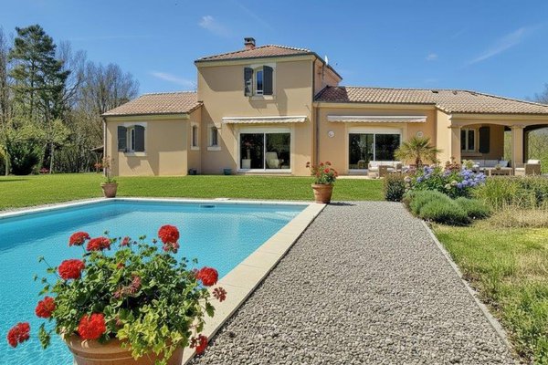 Dordogne - Périgord Noir: stijlvolle, verzorgde en comfortabele villa uit 2000 met verwarmd zwembad van 12 bij 6 meter en poolhouse, zeer rustig gelegen op 2,3 hectare met vijver op 20 minuten van historische stadjes Le Bugue en Montignac; 100% privacy