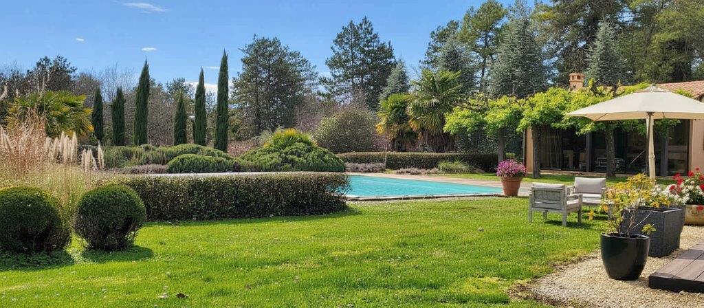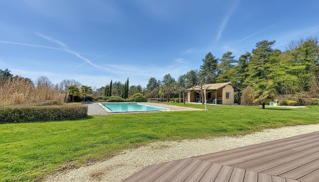 Een vredige, inspirerende woonomgeving waar natuur en comfort naadloos samenkomen voor deze zeer verzorgde villa met zwembad. Ver weg van alle drukte en nieuwsgierige blikken. Gelegen in de omgeving van Plazac, Le Bugue en Montignac, omgeven door 2,3 hectare park en eigen bos. Op 20 minuten van het historische stadje Montignac/Lascaux met prachtige wandelroutes in de buurt. Het huis staat midden in de fraai aangelegde tuin, compleet met een verwarmd zwembad en een kleine, schaduwrijke siervijver. Geen directe buren. De tuin is met oog voor detail ontworpen en beschikt over diverse slim verdeelde irrigatiesystemen, die het onderhoud vereenvoudigen en elk beplant gebied verfraaien. Het gehele perceel is volledig omheind (met uitzondering van het bos), wat zorgt voor veiligheid en rust. Toegang is via een elektrische poort. Een licht en comfortabel huis, instapklaar en gerenoveerd in 2013. Het huis is ontworpen om comfortabel wonen, functionaliteit en onderhoudsgemak te combineren.