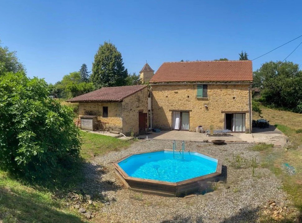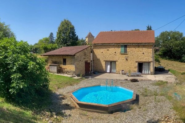 Dordogne - Périgord Noir: sympathiek, natuurstenen woonhuis (3 sk, bk) met eenvoudig zwembad en schuurtje op 2,5 hectare aan rand van karakteristiek gehucht op korte afstand van bastidestadje Villefranche-du-Périgord in het zuidelijk deel van de Dordogne