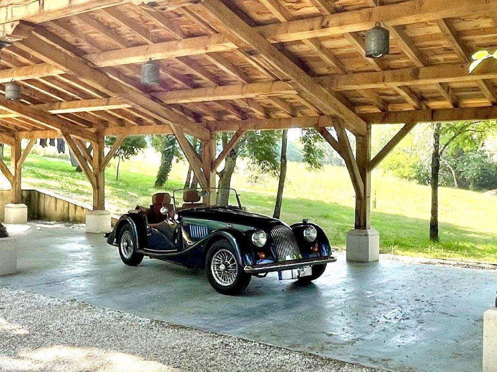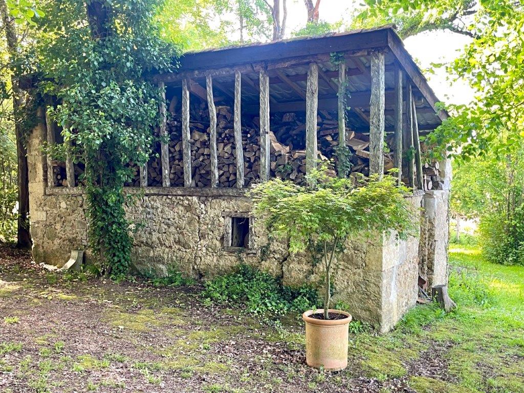 De bijgebouwen omvatten een zeldzaam elegante carport met gietijzeren kolommen en eikenhouten gebinte, een houtopslag, een schuur van 150 m², een garage en een wijnkelder.