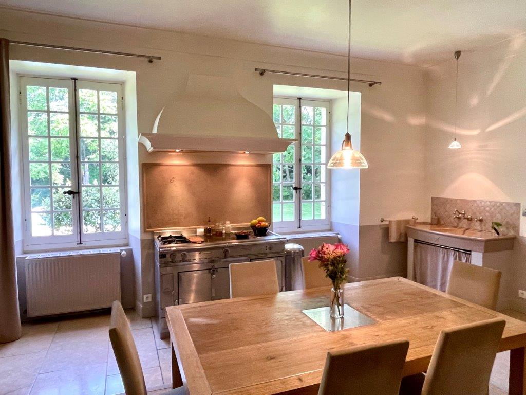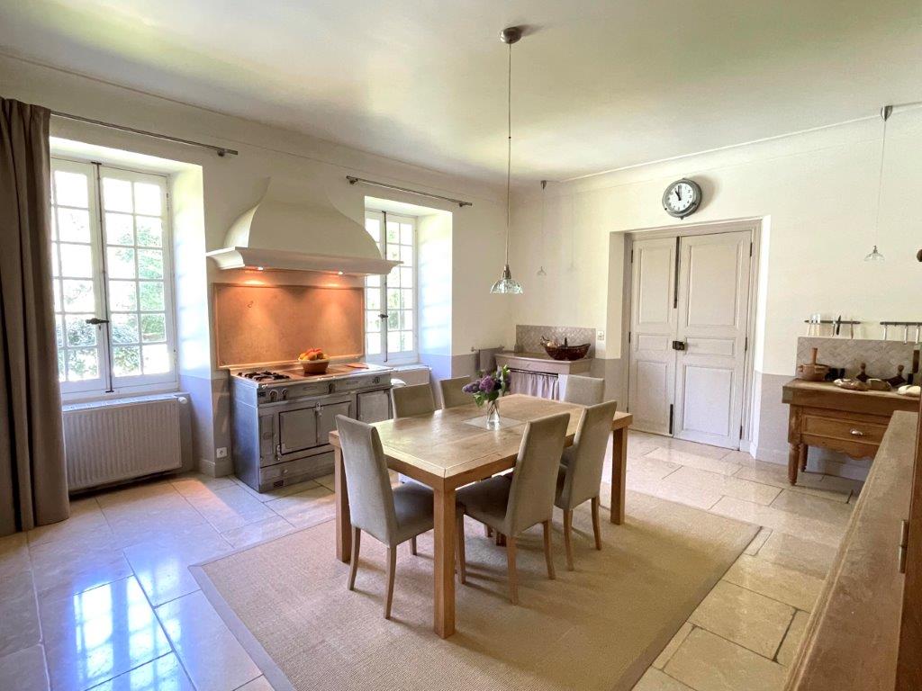Vanaf het moment van arriveren onthult het majestueuze smeedijzeren hek uit de 19e eeuw en de lange, met bomen omzoomde oprijlaan de grandeur van dit nobele landgoed, discreet gelegen in een weelderig en rustig park. Dit historische domein, met een geschiedenis die teruggaat tot de 14e en 18e eeuw, biedt een zeldzame combinatie van tijdloze elegantie en een verfijnde levensstijl op het platteland. Het terrein van 6 hectare omvat een park van 2 hectare met eeuwenoude bomen, gecultiveerde gronden en een weiland, ideaal voor paarden of andere dieren. Een natuurlijke bron en een waterput voorzien in water, terwijl een charmante beek het terrein doorkruist, overspannen door twee stenen bruggetjes. De zuidgeoriënteerde gevel van de maison de maître is voorzien van grote ramen met omlijsting in natuursteen. In het voorjaar bloeien er majestueuze klimrozen langs de voorzijde.