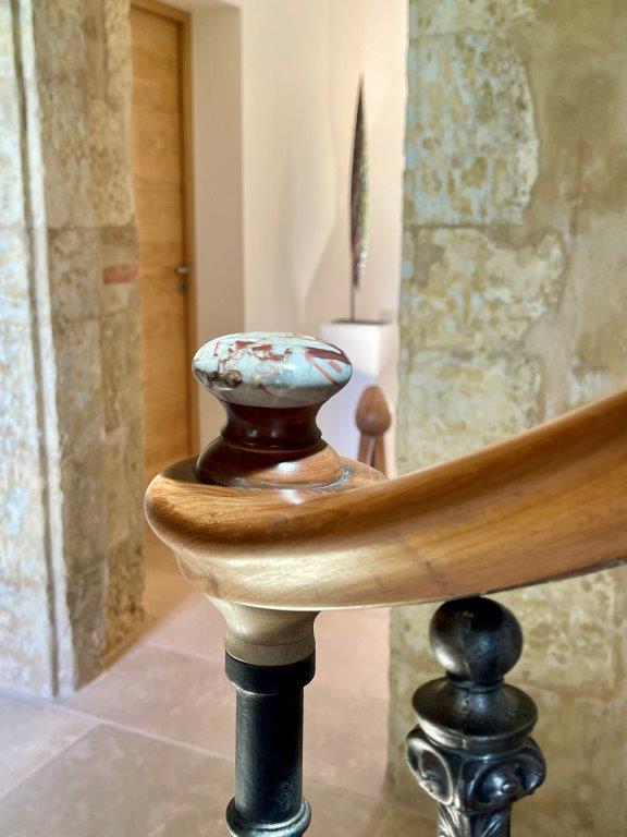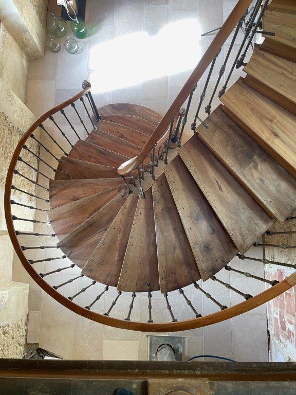Een prachtig eikenhouten Directoire-trappenhuis leidt naar de bovenverdieping.