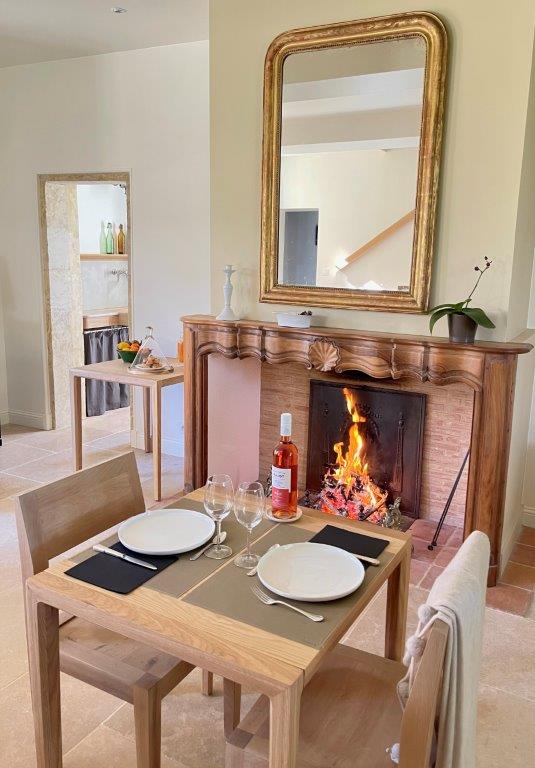 Aansluitend op de hoofdwoning bevindt zich de westvleugel, oorspronkelijk bedoeld als personeelshuisvesting. Deze is volledig gerenoveerd met behoud van de originele stenen muren, houten draagstructuur en zijn bijzondere klokkentorentje. Deze vleugel heeft een eigen ingang en kan zelfstandig functioneren. Binnen vindt u een eetkamer met een prachtige 18e-eeuwse notenhouten open haard, een salon met een indrukwekkende open haard in Régence-stijl, een keuken en voorraadruimte. Boven bevinden zich twee ruime suites, elk met eigen Italiaanse douchekamer en toilet. Deze vleugel opent naar een privé terras in Bourgondische natuursteen en een omsloten tuin, ideaal voor maaltijden in de buitenlucht. Met zijn sterjasmijn en weelderige bougainvilles krijgt deze plek in de zomer de sfeer van een geheime tuin.