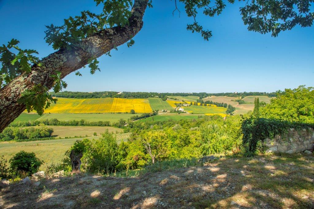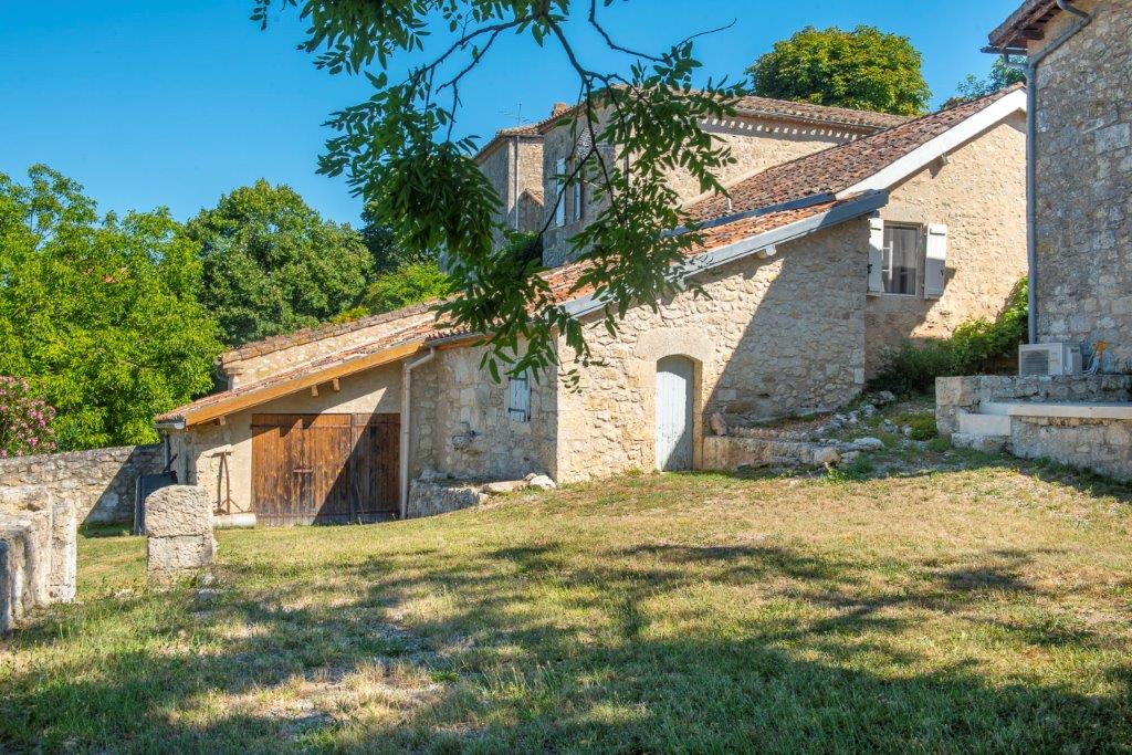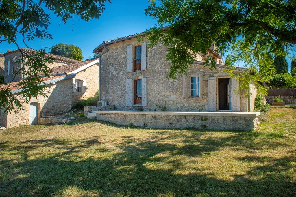 Gascogne - Gers: karakteristiek woonhuis 'en pierre' met twee woondelen met eigen ingang, idyllisch en hoger gelegen aan de rand van een kasteeldorp met prachtig uitzicht op het glooiende landschap op 2.630 m² vlak terrein op 7 minuten van voorzieningen