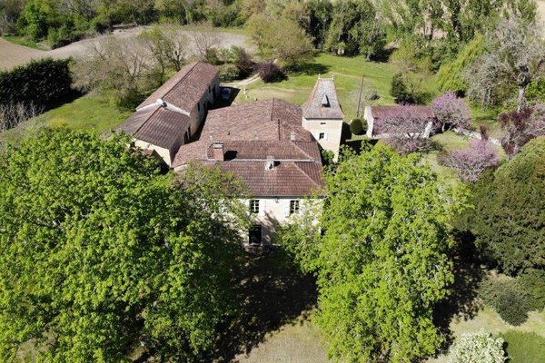 Gascogne - Gers: landelijk en rustig gelegen voormalige wijndomaine, bestaande uit een stijlvol herenhuis, toren, gastenhuis en diverse grote bijgebouwen, gesitueerd op 3,5 hectare met eigen waterbron en zonder directe buren; privacy gegarandeerd