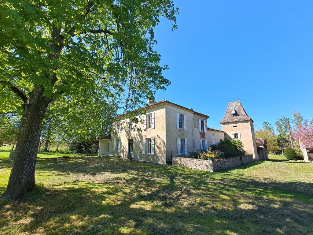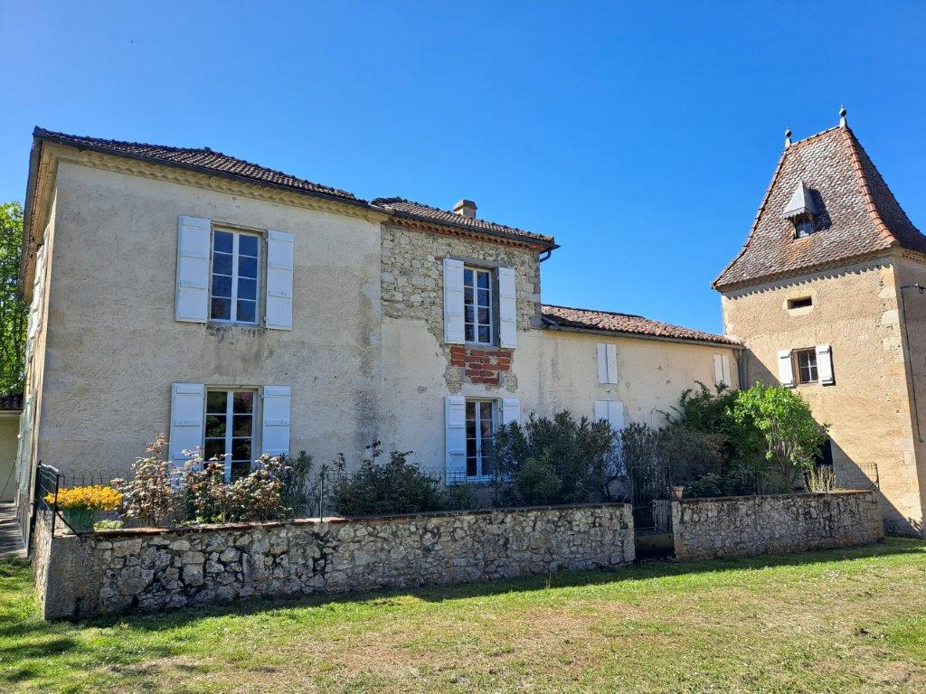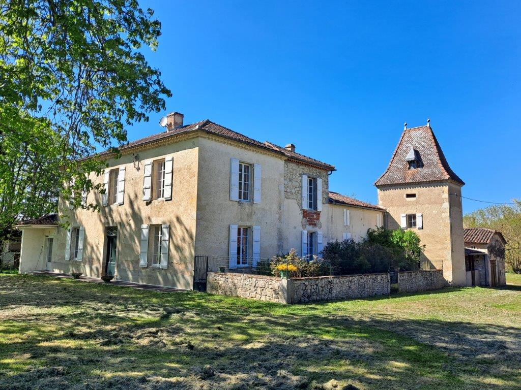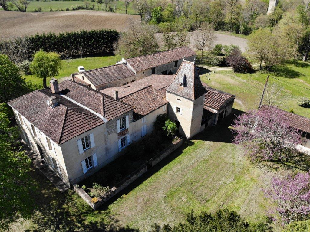 Gascogne - Gers: landelijk en rustig gelegen voormalige wijndomaine, bestaande uit een stijlvol herenhuis, toren, gastenhuis en diverse grote bijgebouwen, gesitueerd op 3,5 hectare met eigen waterbron en zonder directe buren; privacy gegarandeerd
