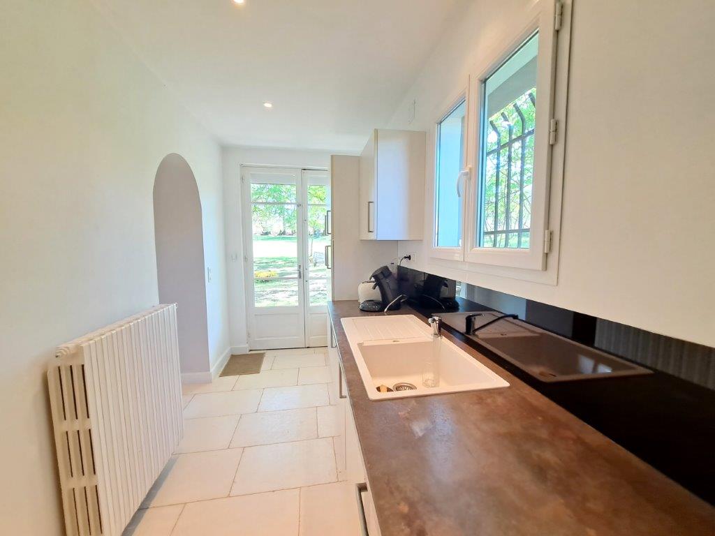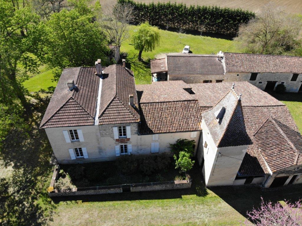Prachtig, landelijk gelegen ensemble de bâtiments op slechts 10 minuten van dynamisch marktstadje met winkels, scholen, supermarkten en medische voorzieningen. Het geheel bestaat uit een typisch Gascons herenhuis van 210 m² woonoppervlak, een conciërge- of gastenwoning van 82 m², grote bijgebouwen, en het ligt op een prachtig terrein van ruim 3,5 hectare met een bosgedeelte en een natuurlijke bron. Zonder directe buren heerst hier absolute stilte en rust. Het hoofdhuis heeft toegang tot enkele niet-gerenoveerde ruimtes aan de achterzijde en tot een deel van de bijgebouwen, waardoor het gemakkelijk uitgebreid kan worden.