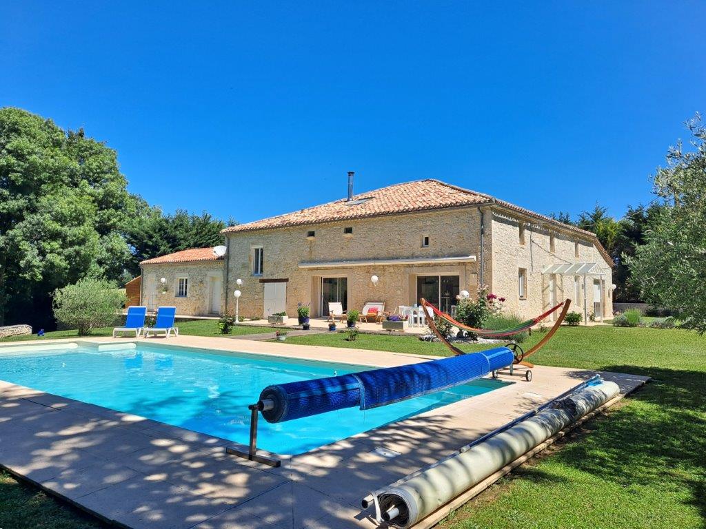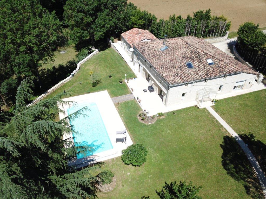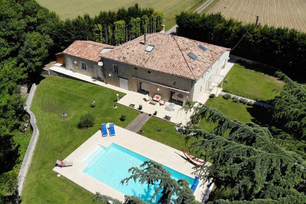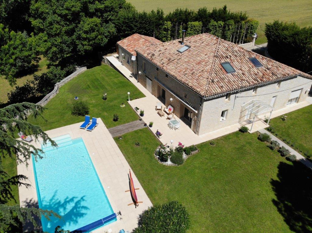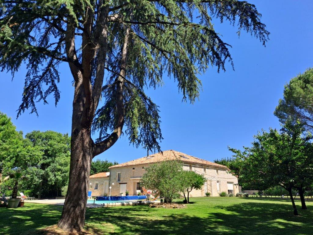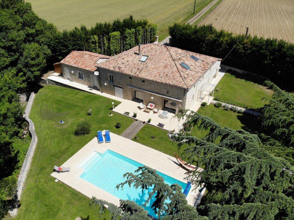 Gascogne - Gers: natuurstenen woonhuis (5 sk, 3 bk) uit 1890 met mooi zwembad van 12 bij 5 meter en atelier in goede staat van onderhoud, gelegen op 4.400 m² terrein op 10 minuten van het gezellige historische stadje Lectoure met vele voorzieningen