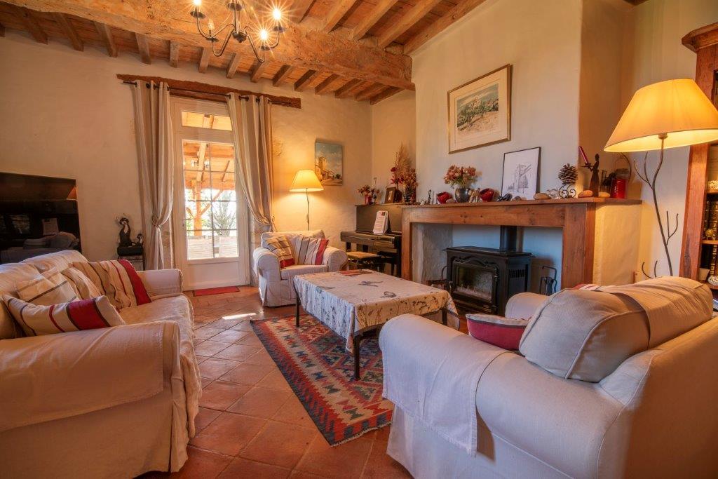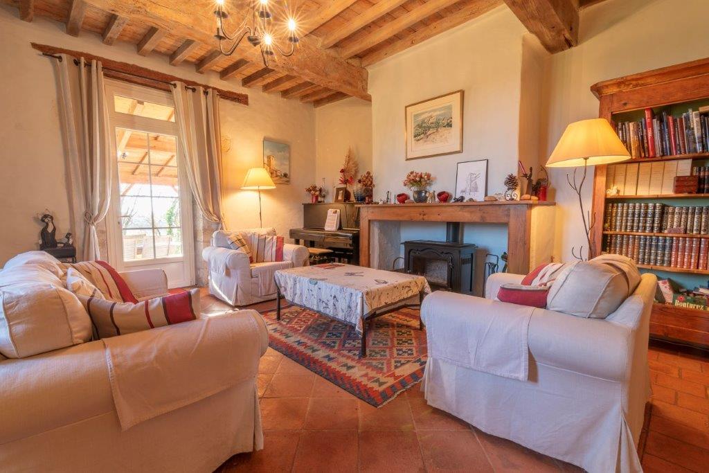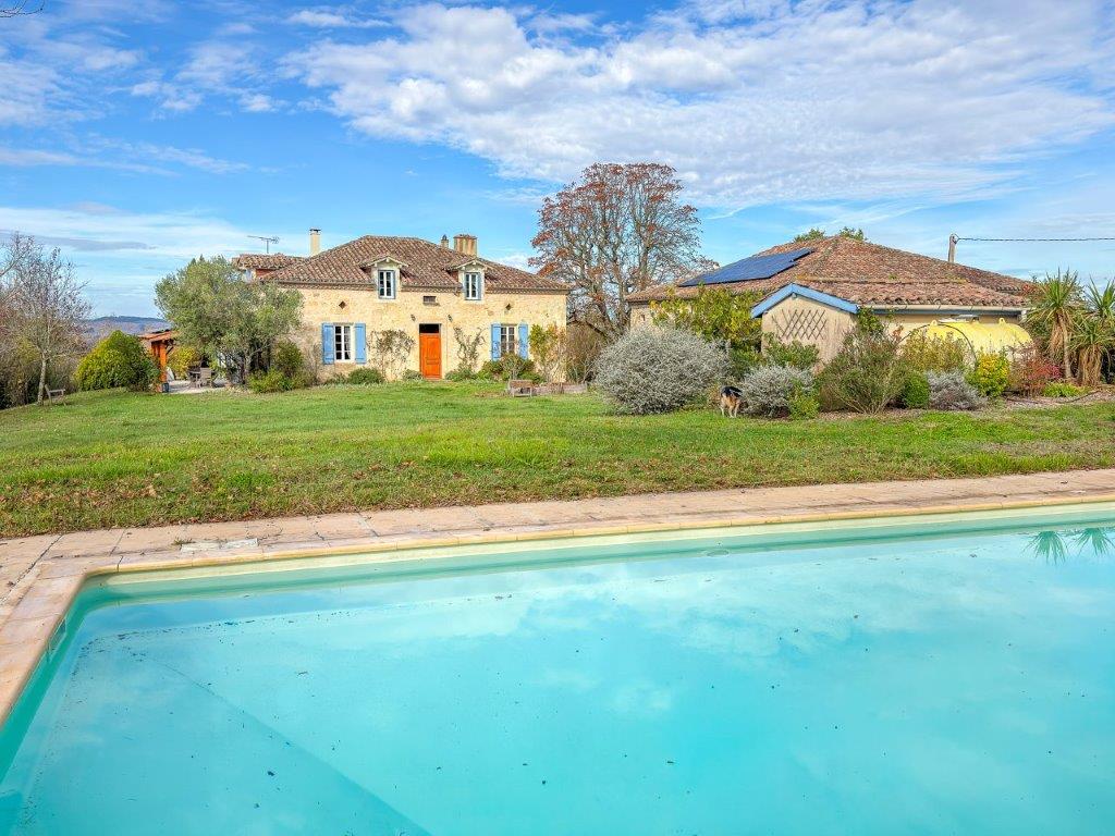 Gascogne - Gers: prachtig gelegen authentiek woonhuis in goede staat met separaat gastenverblijf/gîte, verwarmd zwembad van 12 bij 6 meter en enkele bijgebouwen, gesitueerd op ruim een hectare vlakbij voorzieningen met mooie aankom en geen directe buren