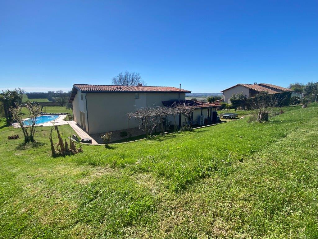 Gascogne - Gers: verrassend ruime woning (5 sk, 2 bk) met zwembad en prachtig opzicht op de Pyreneeën in de verte, gelegen op circa 1 hectare grond, deels bebouwbaar, aan de rand van dorp niet ver van groter stadje met vele voorzieningen