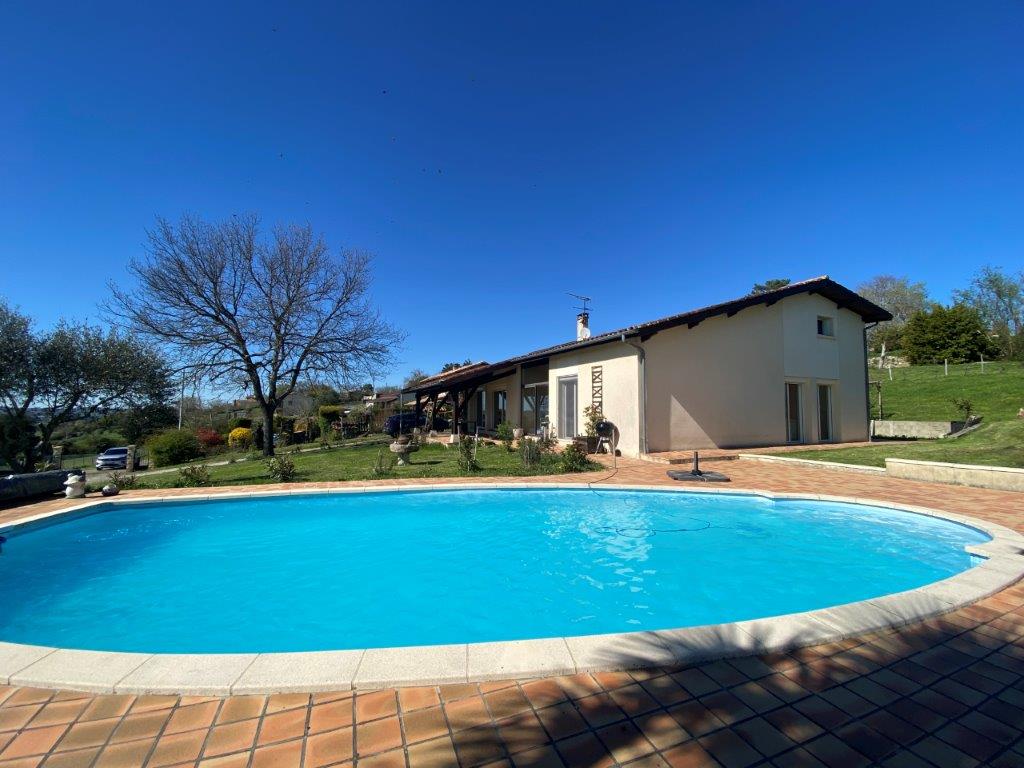 Gelegen aan de rand van een charmant dorp met school en bushalte, op slechts enkele minuten van een mooi marktstadje, biedt deze woning 190 m² woonoppervlak met zwembad een rustige en vredige omgeving met een uitzonderlijk uitzicht op de Pyreneeën. Gelegen op een perceel van ongeveer 1 hectare, waarvan een groot deel bebouwbaar is. Buiten nodigt het zwembad met zonneterras uit tot ontspanning en is voorzien van diverse uitrustingen (douche, robotreiniger, zomer- en winterafdekking). Het volledig omheinde terrein met elektrische poort beschikt tevens over een regenwateropvang-vijver en een jonge boomgaard met pruimen-, kersen-, abrikozen- en appelbomen.