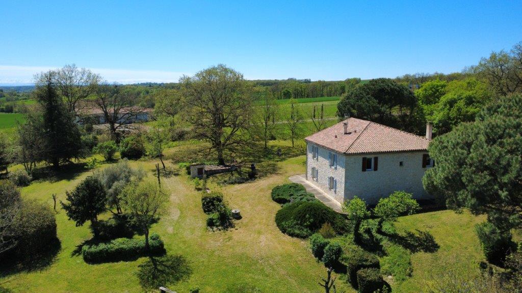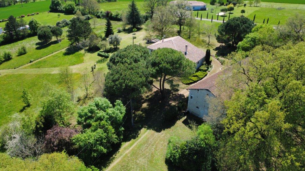 Gascogne - Gers: verzorgd en karakteristiek woonhuis 'en pierre' (4 sk, 3 bk) met mooi bijgebouw op landelijk plekje en toch op loopafstand van voorzieningen; 2,2 hectare grond met oprijlaan op 50 minuten van vliegveld van Toulouse en half uur van Auch