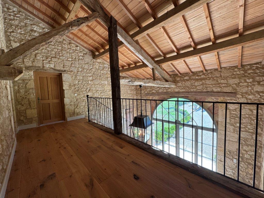 Gelegen tussen de charmante steden as Condom, Lectoure en Agen, bevindt zich dit prachtige stenen landhuis – een voormalige wijnschuur – dat in 2021 volledig is gerenoveerd door een gerenommeerd lokaal bedrijf. Het landhuis biedt 445 m² aan woonoppervlak, midden in een prachtig aangelegde tuin van 1 hectare. Achter een sierlijk smeedijzeren hek leidt een witte oprijlaan naar het hoofdgebouw. Buiten nodigt het verwarmde zwembad – eveneens op een warmtepomp – met zijn travertijn terras uit tot ontspanning. De ruime, schaduwrijke terrassen maken buitenleven heerlijk, zelfs op de warmste zomerdagen. Het landhuis ligt in een rustige, vrije omgeving, omringd door velden zonder inkijk, waar het wildleven nog ongestoord leeft – reeën, konijnen, vogels…