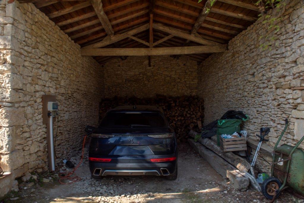 • Schuur (33 m²) in gebruik als carport met laadpaal voor elektrische auto