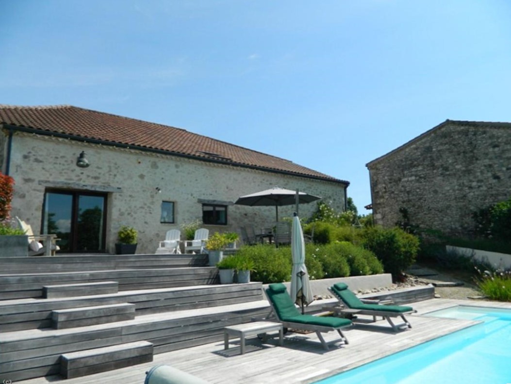 CO-EXCLUSIVITEIT: Genesteld in een groene omgeving en landelijk gelegen op ruim 3.200 m² ligt deze charmante woning, een voormalige schuur gerenoveerd in loftstijl, op verfijnde wijze moderne ruimtes met authentieke charme. De in 2008 voltooide woning biedt een onbelemmerd uitzicht op het landschap en hoogwaardige voorzieningen. Het geheel omvat tevens een in 2020 deels gerenoveerde stenen boerderij (nog afwerking nodig), een garage, twee open schuren en een verwarmd zwembad. Een uitzonderlijk object, ideaal als gezinswoning of karaktervolle residentie met potentie voor het ontvangen van gasten, in het noorden van het departement Lot-et-Garonne.