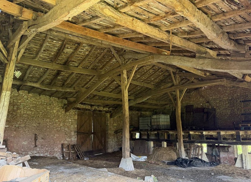Gascogne - Lot-et-Garonne: uniek 'ensemble de bâtiments' op 21 hectare met eigen meertje, bestaande uit een degelijk hoofdhuis, gastenverblijf/gîte, tweede te renoveren huis, grote schuren en kapschuur in de omgeving van bastidestadje Villeréal