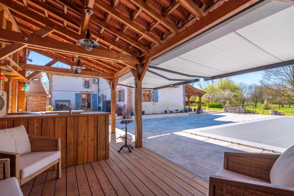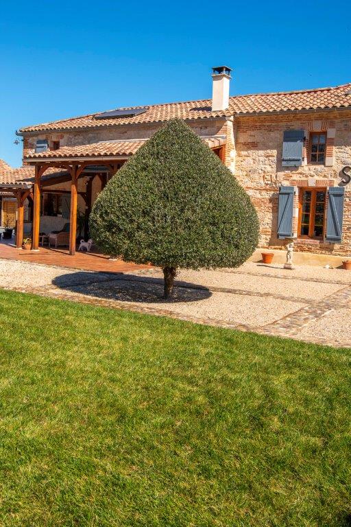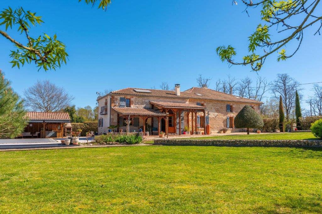 Gascogne - Tarn-et-Garonne: charmant woonhuis (3 sk, 2 bk) met ruime vertrekken en in uitstekende onderhoudsstaat met fraai zwembad van 11 bij 5 meter, atelier, garage en carport, rustig gelegen op 2 hectare op 10 minuten van stadje en uur van Toulouse