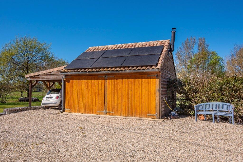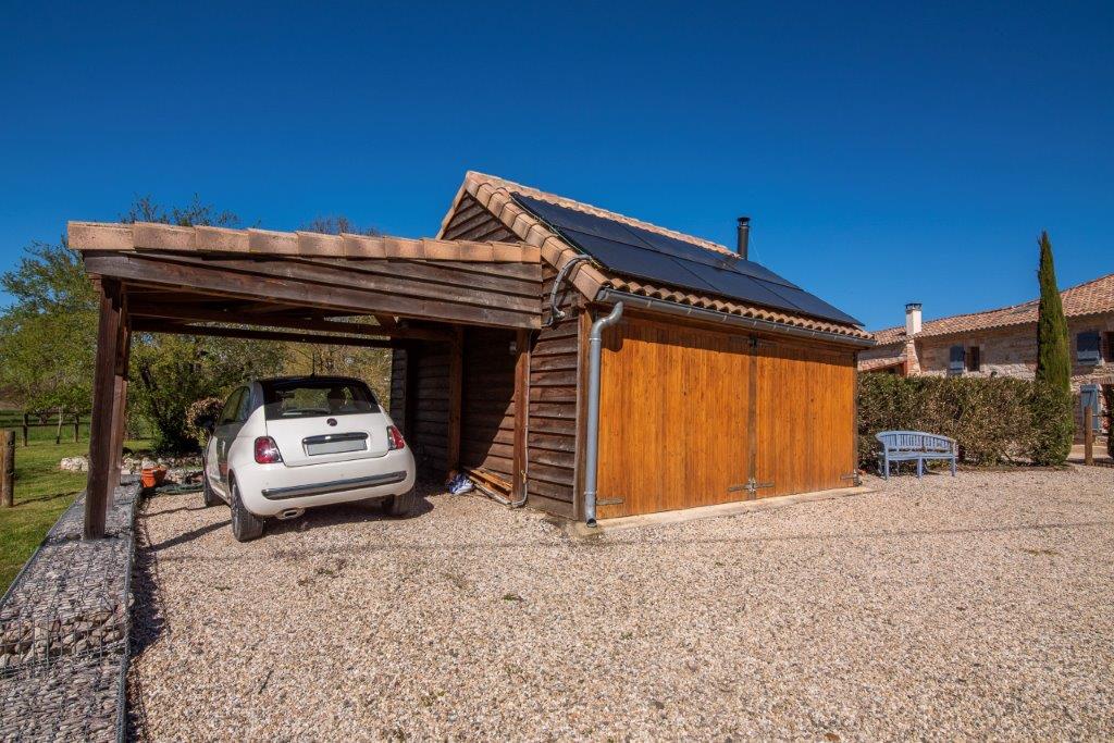 • Dubbele garage met verwarmingsinstallatie (kan nog steeds één auto parkeren), carport aan de zijkant