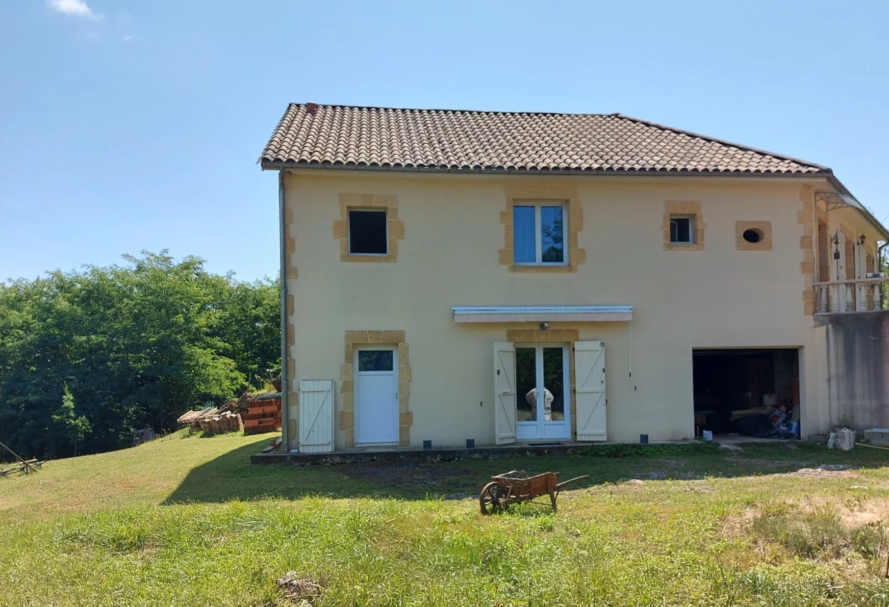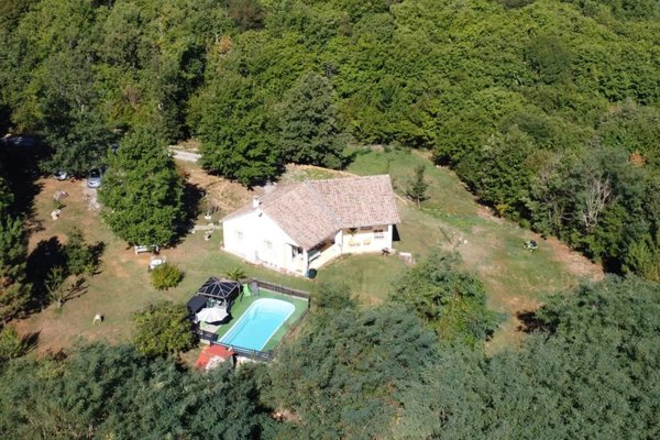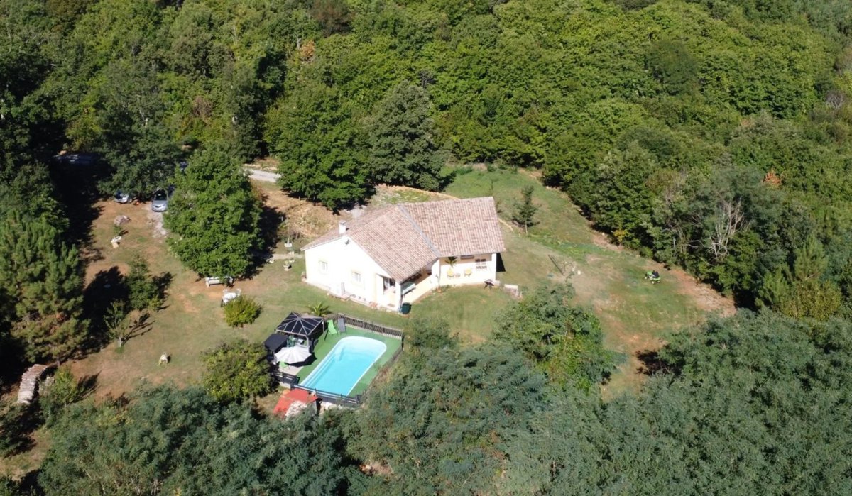 Lot - Bouriane: speels woonhuis uit 2011 met woongedeelte op de begane grond, gastenverblijf in de onderste verdieping en zwembad op 6.578 m², rustig gelegen met hier en daar buren in de groene streek Bouriane op 10 minuten van stadje met voorzieningen