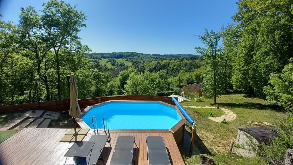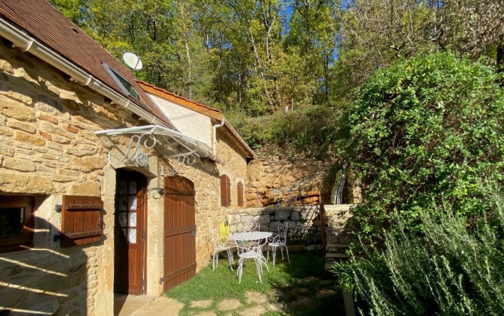 Lot - Occitanie: rustig gelegen karakteristiek 'ensemble' bestaande uit twee gerenoveerde authentieke woonhuizen, eenvoudig zwembad van 6 bij 4 meter, chalet, tuinhuisje en garage op 8.325 m² met open uitzicht in bosrijke omgeving bij Prayssac
