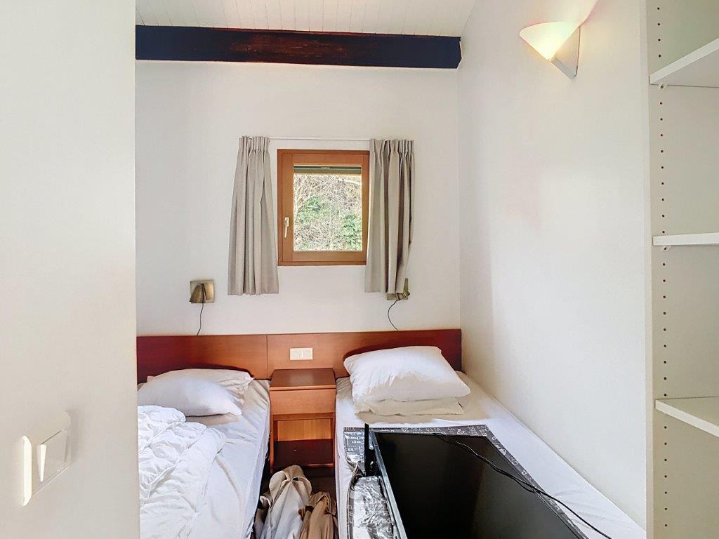 De woning bevindt zich op een vakantiedomein met ongeveer 50 woningen en biedt toegang tot gemeenschappelijke voorzieningen, waaronder een zwembad. De woning beschikt over een privéterras en een aangename buitenruimte, ideaal om buiten te eten of te ontspannen.