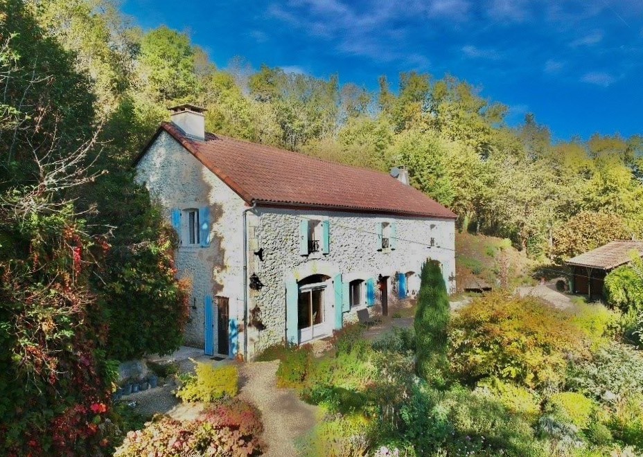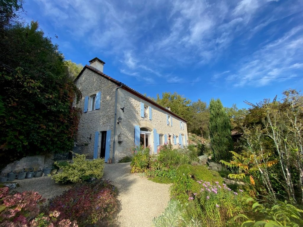 Natuurstenen woonhuis in goede staat met enkele bijgebouwen en bosrijk terrein van 14.337 m². Rustige locatie zonder directe buren op 3 kilometer van middeleeuws stadje aan de rivier de Lot en met voorzieningen. De woning (218 m² woonoppervlak) is verdeeld over 2 verdiepingen: 5 slaapkamers, woonkamer, eetkamer, keuken, 2 badkamers met douche, 2 toiletten, bijkeuken, kleedkamer.