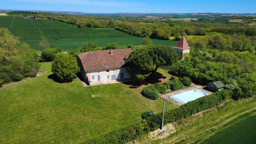 Indrukwekkend en stoer natuurstenen landhuis met maar liefst 580 m² woonoppervlak op uitzonderlijke locatie op slechts 50 kilometer van de internationale luchthaven Toulouse-Blagnac. Er zijn geen directe buren en het pand is toegankelijk via een lange privéoprijlaan. Ligging op een heuvel met adembenemende uitzichten. Het pand is dertig jaar geleden herbouwd vanuit een ruïne. Mooi privézwembad, duiventoren en midden op 3 hectare voor uitstekende privacy. Er is tevens een onafhankelijk appartement voor gasten of beheerder. Eigen waterbron.