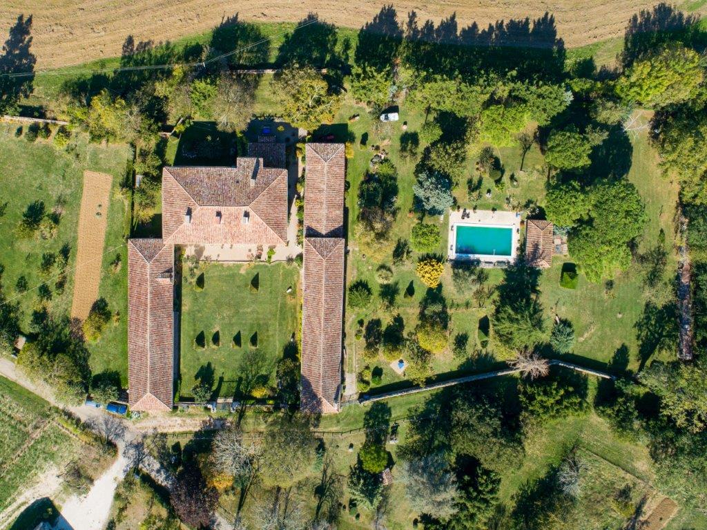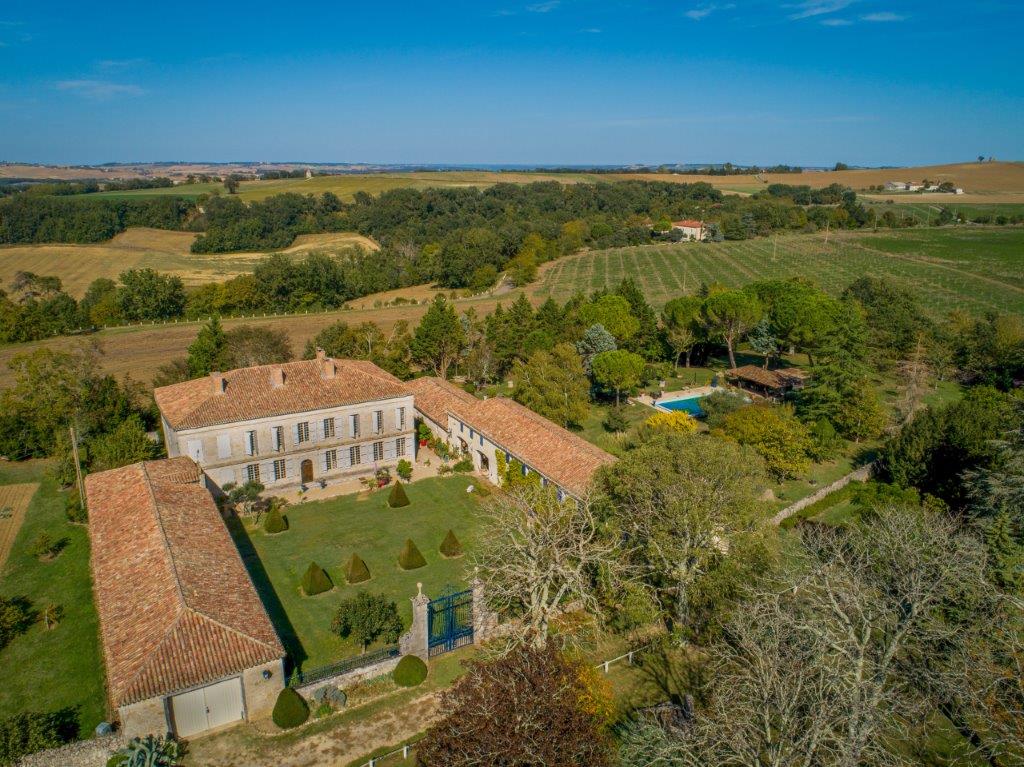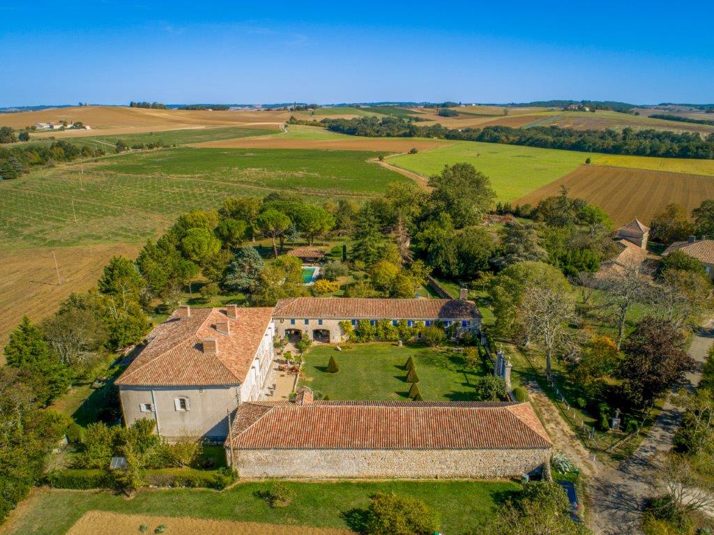 Gascogne - Gers: zeer indrukwekkend XVII-e eeuws landgoed met klassieke Manoir, natuurstenen gîte, bijgebouwen, cour en groot zwembad aan de rand van mooi plaatsje op ruim 9.200 m² grond met oude bomen op een uur van de stad Toulouse; stijlvol geheel