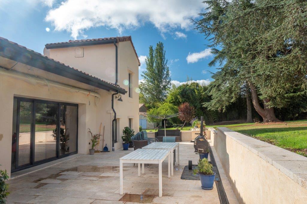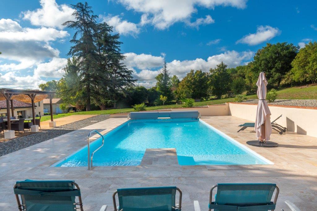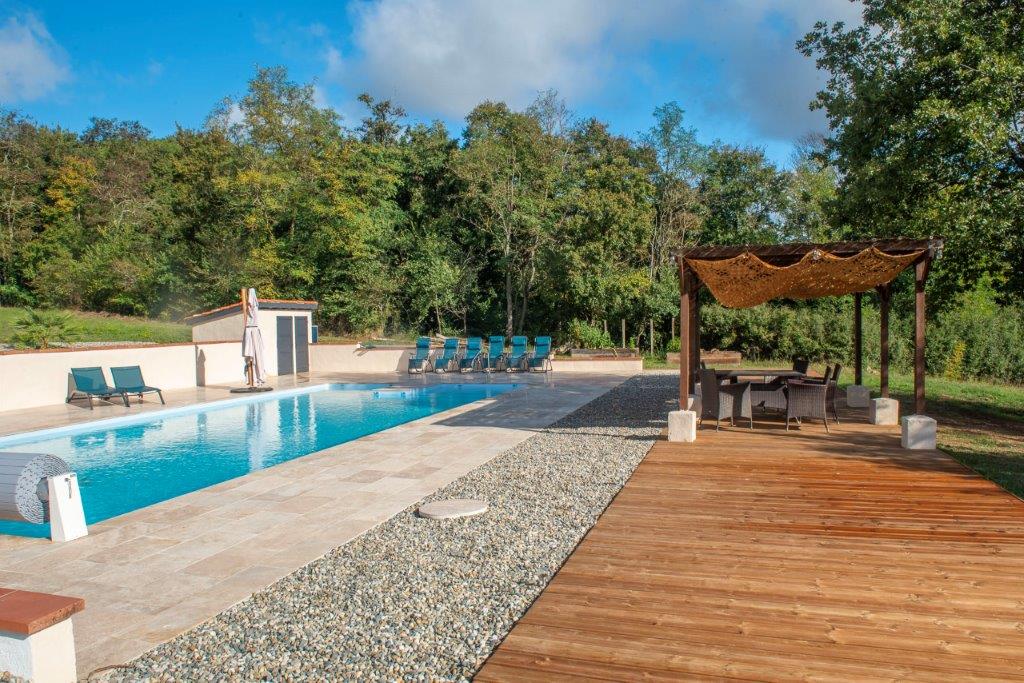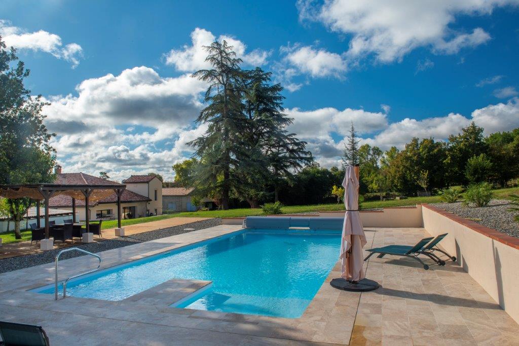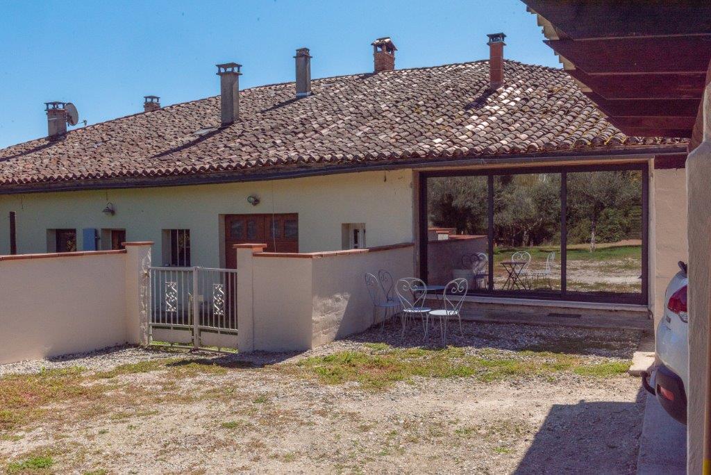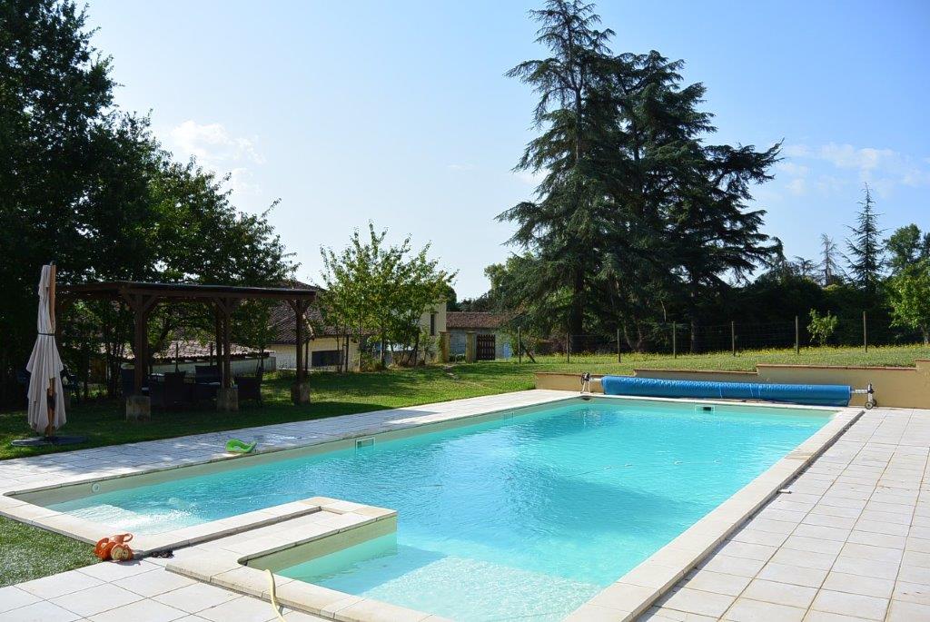 Gascogne - Gers: landelijk gelegen, smaakvol gerenoveerd woonhuis (5 sk, 3 bk) met grote tweede woning (4 sk, 2 bk) voor gasten, vrijstaande schuur en zwembad van 13 bij 6 meter op 3,5 hectare met moestuin, olijfgaard en bos op uur van vliegveld Toulouse