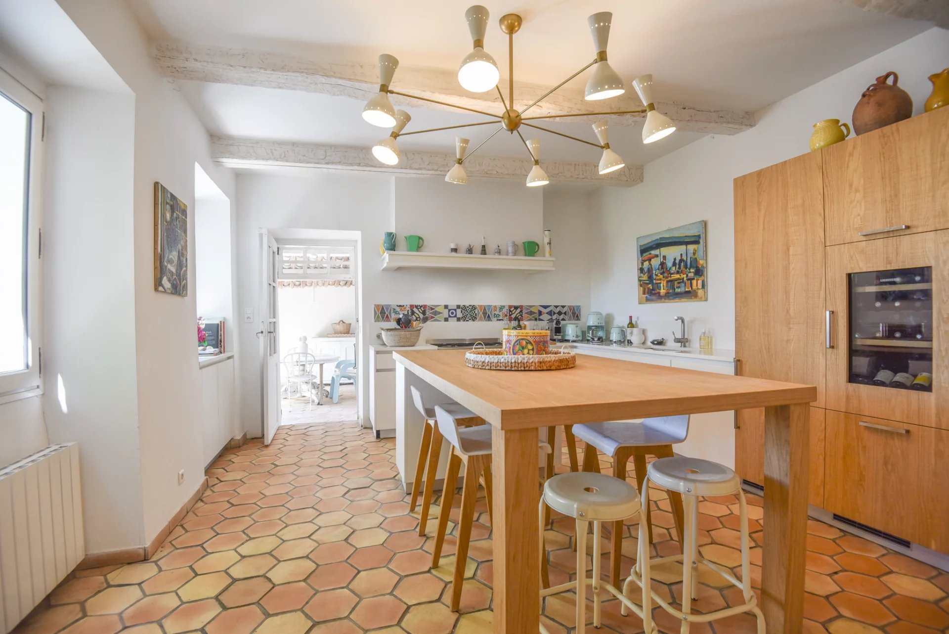 Prachtige authentieke bastide gelegen in een rustige woonwijk van een middelgroot, levendig stadje in het achterland van de Côte d'Azur. Volledig gerenoveerd in 2018 met 230 m² woonoppervlak met veel charme en authenticiteit. Het biedt ook nog mogelijkheden voor meer woonruimte met ongeveer 120 m², allemaal gelegen op een royaal perceel van 3.262 m². De buitenkant van de bastide is betoverend, met een privé zwembad omgeven door olijfbomen en terrassen, met veel privacy. De majestueuze bomen op het terrein zorgen voor schaduw en koelte tijdens de Provençaalse zomers. Daarnaast is er een waterput, een natuurlijke bron en een jeu de boulesbaan.