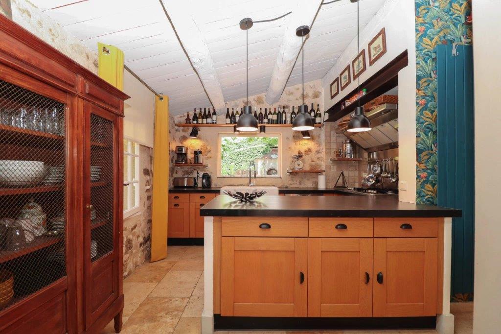 Indeling bergerie met op de begane grond een entree met opbergruimte, toilet, woonkamer van 35 m² met open haard en mezzanine/vide, ingerichte open keuken, veranda (thans in gebruik als eetkamer). Kantoortje van 10 m². Het slaapgedeelte biedt twee slaapkamers, een badkamer en een ingebouwde linnenkast. Een derde slaapkamer beschikt over een eigen badkamer.