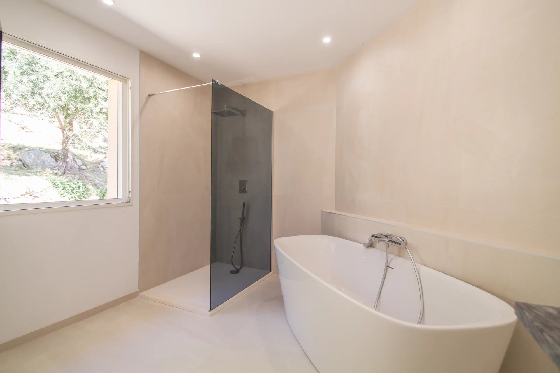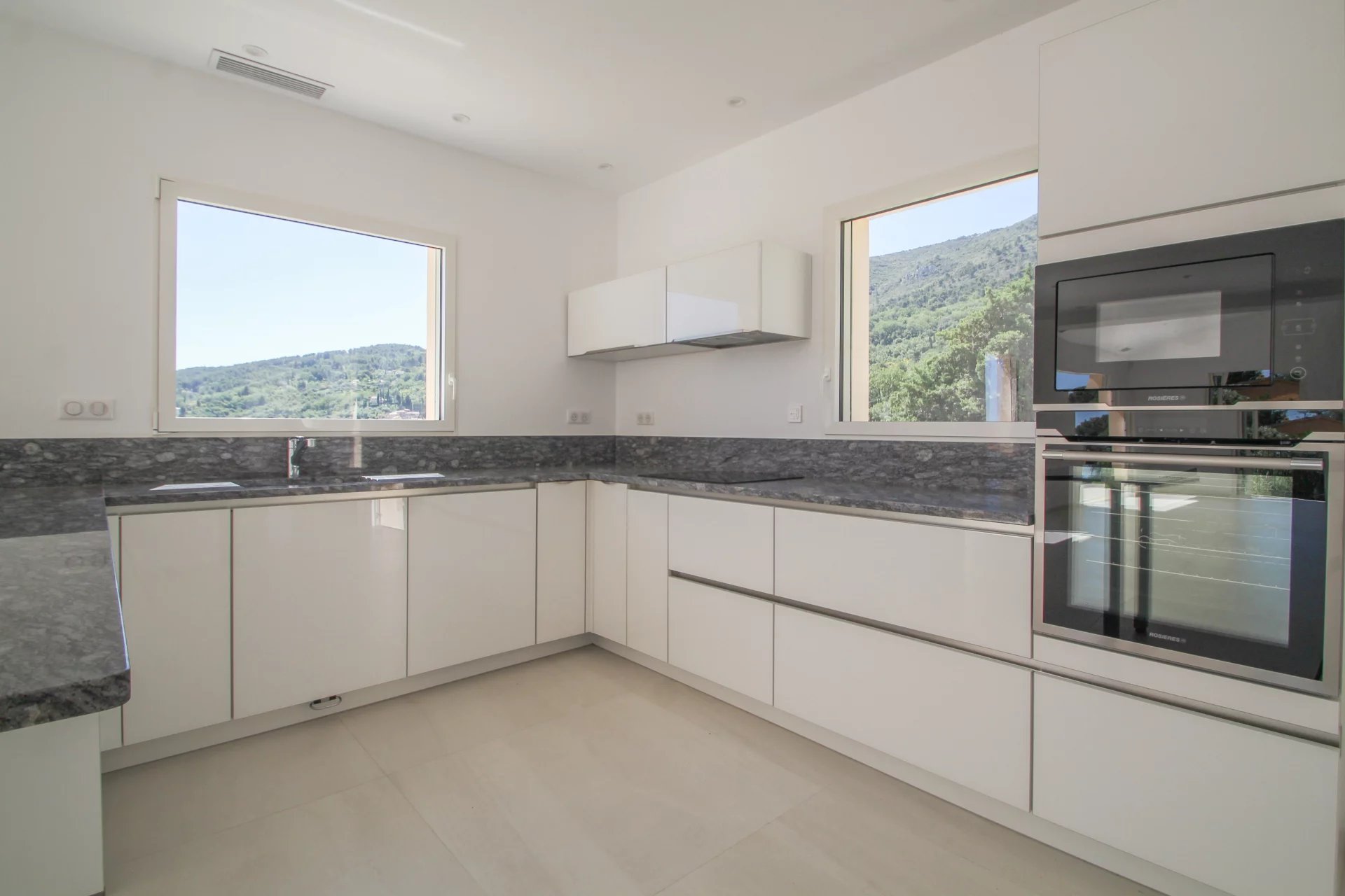 Moderne villa in nieuwstaat, gebouwd in 2021 met hoogwaardige en duurzame materialen, hoger gelegen met panoramisch uitzicht op een stadje en de omliggende heuvels. Perceel van 3.259 m² met dominante positie. De grote terrastuin is beplant met olijfbomen en fruitbomen en biedt een zwembadgedeelte met terras. Deze woning heeft een bron waarmee u op uw gemak de tuin kunt bewateren en het zwembad kunt onderhouden