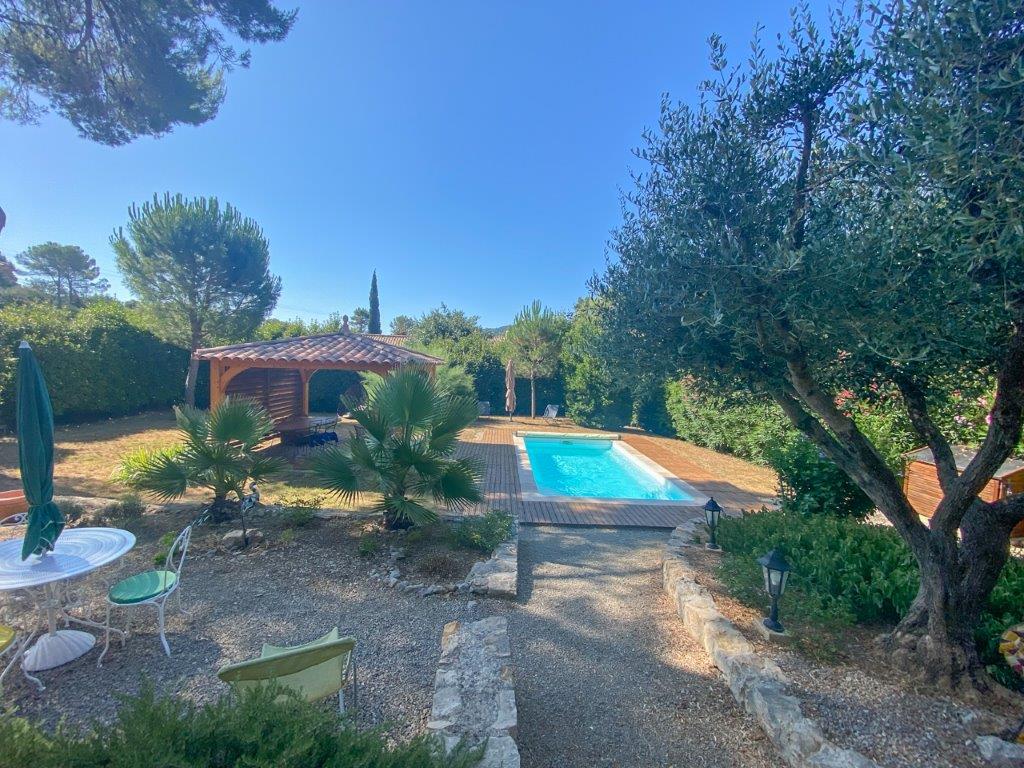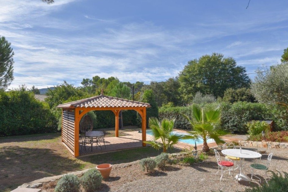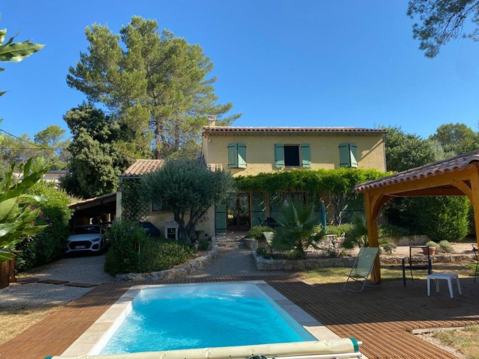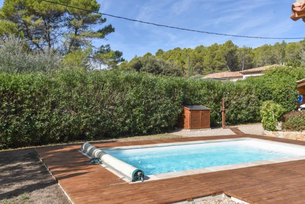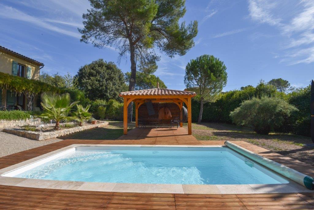 Provence - Var: charmante Provençaalse villa (5 sk, 2 bk) i.g.st. met goede uitstraling en handzaam zwembad van 6 bij 3 meter met overdekt terrassen, rustig gelegen op 1.600 m² met zonder inkijk vlakbij centrum dorp en 35 minuten van de Middellandse zee