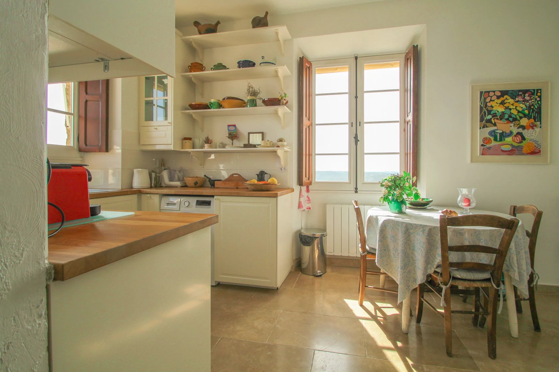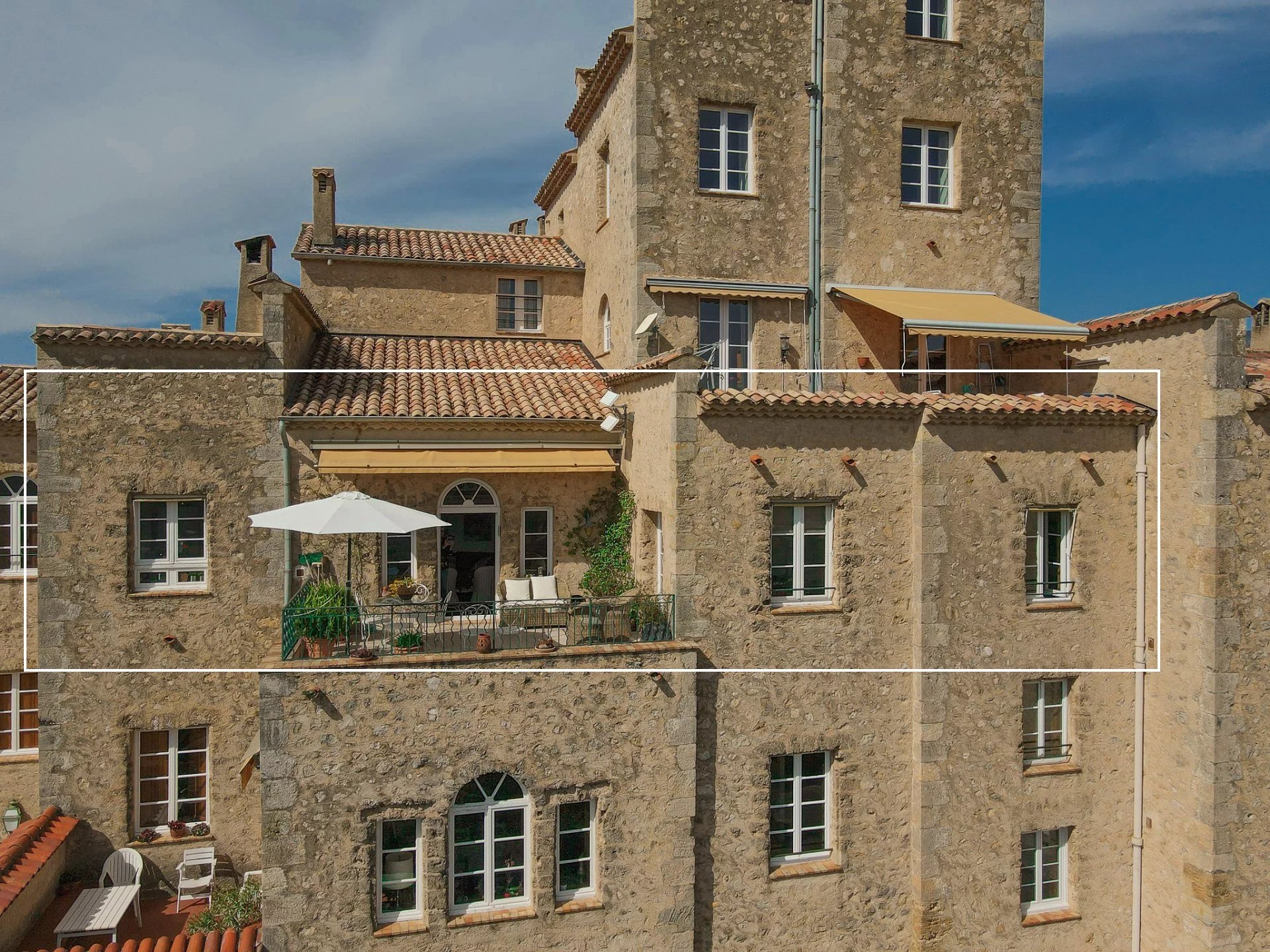 Provence - Var: kasteel-appartement (2 sk, 1 bk) op begane grond met schitterend uitzicht vanaf alle vertrekken, met groot terras, parkeerplaats en gemeenschappelijk zwembad, gelegen op loopafstand van centrum van heerlijk stadje en een half uur van zee