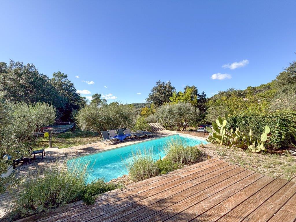 Provence - Var: mooi gelegen Provençaalse villa (4 sk, 3 bk) in goede staat met fraai zwembad en atelier, rustig gelegen op 2.133 m² net iets buiten een idyllisch marktstadje met vele voorzieningen op 40 minuten van de Middellandse zee