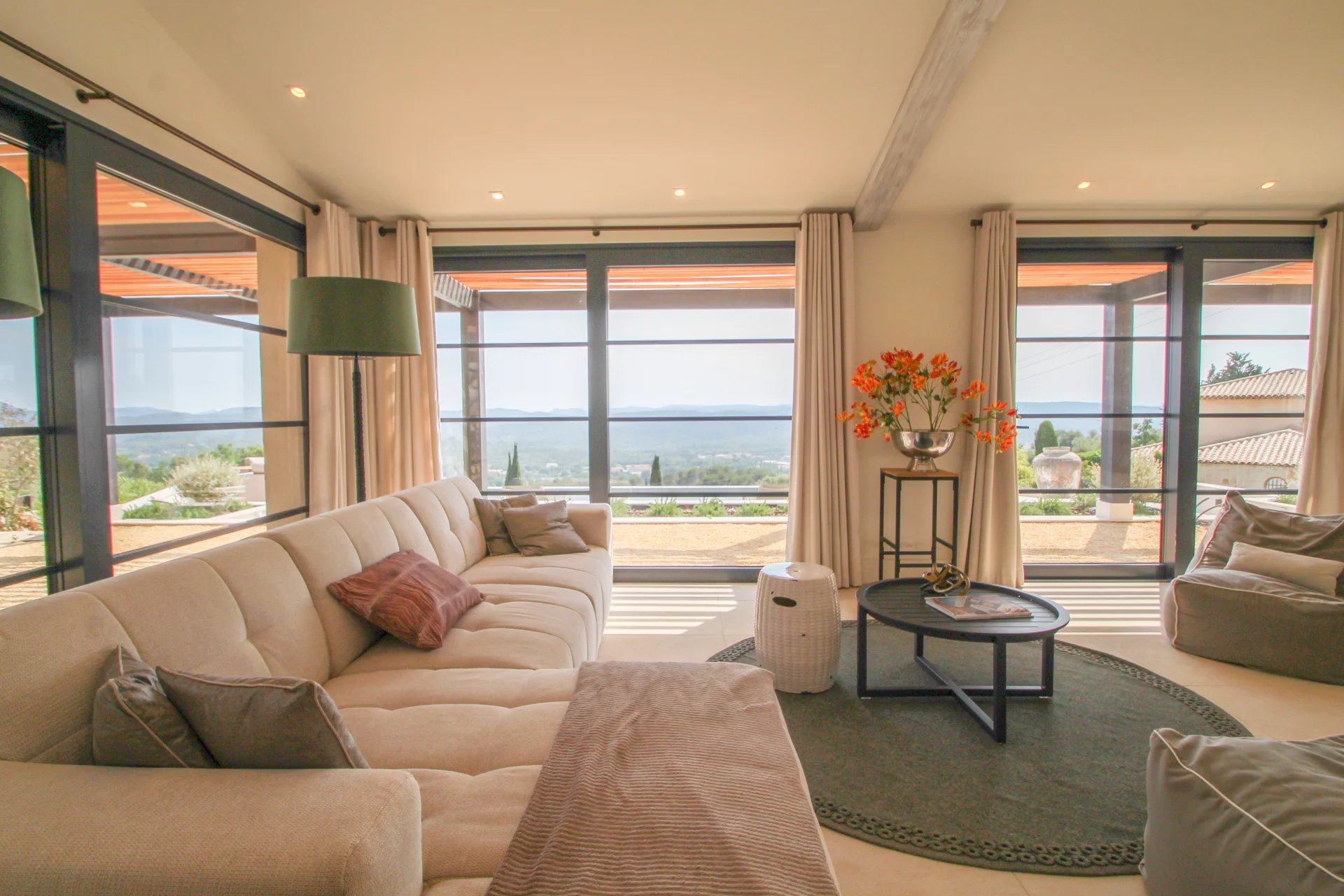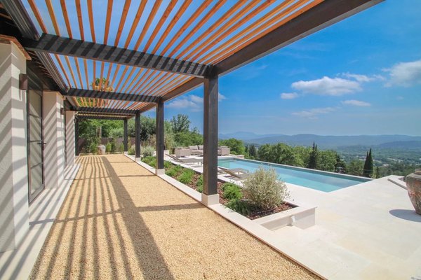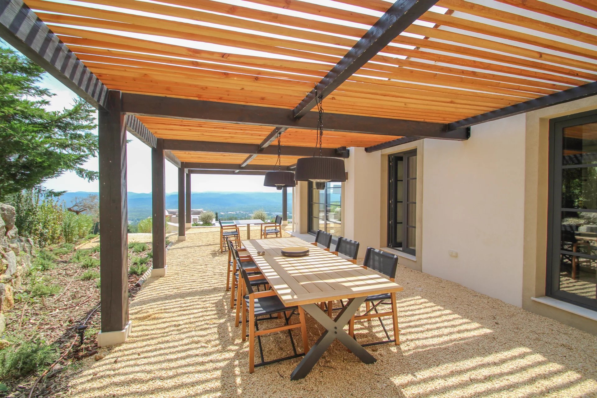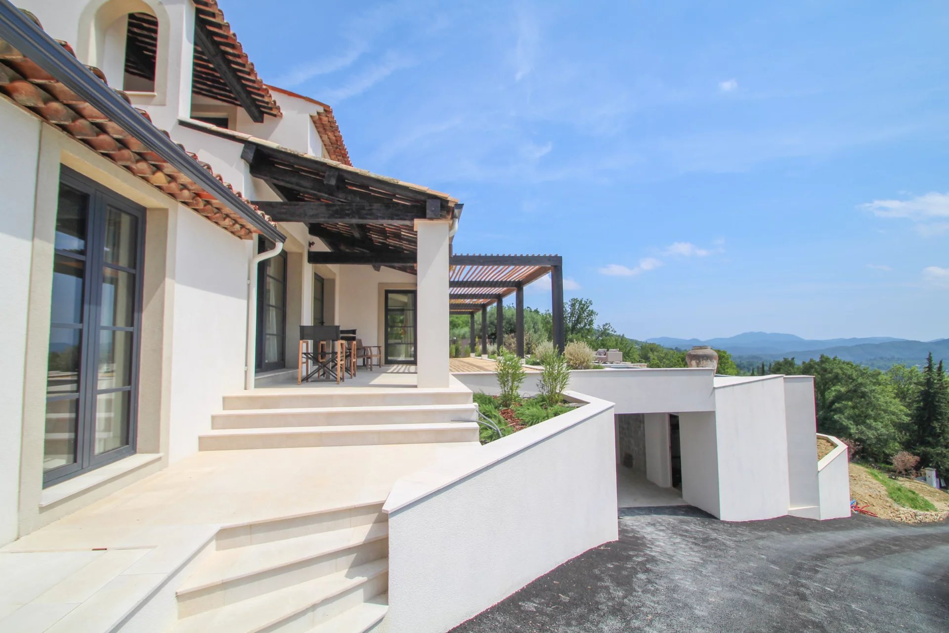 Provence - Var: luxe, lichte villa (5 sk, 3 bk) in nieuwstaat met gastenstudio, infinity pool en adembenemend panoramisch uitzicht op de omgeving; omheinde tuin van ruim 4.600 m² op 5 minuten van idyllisch Provençaals stadje en 30 minuten van zee