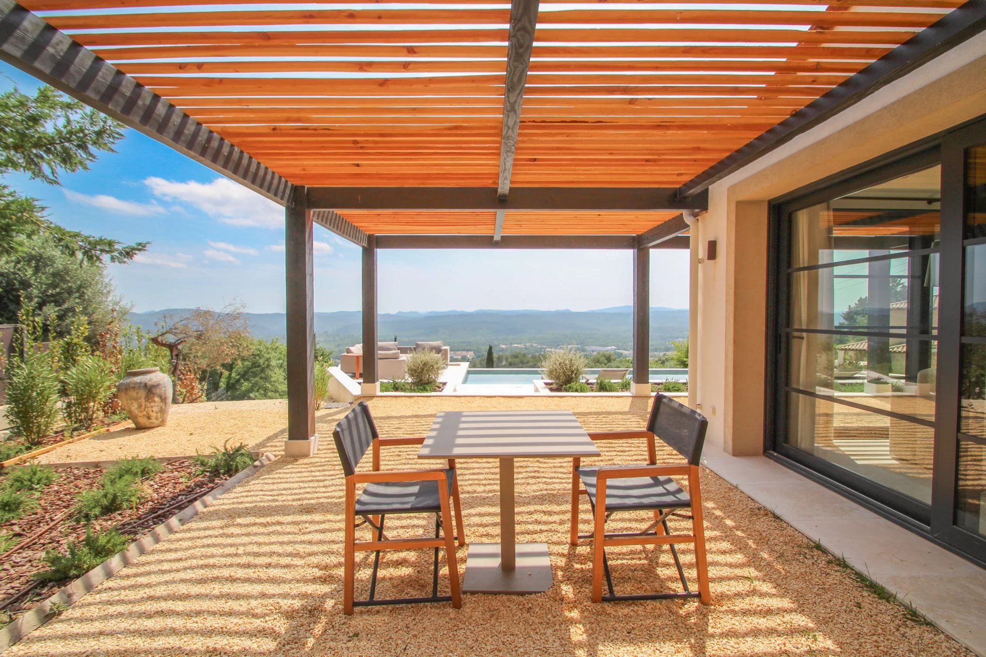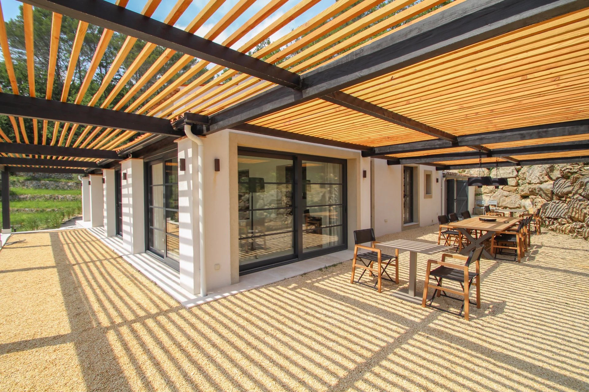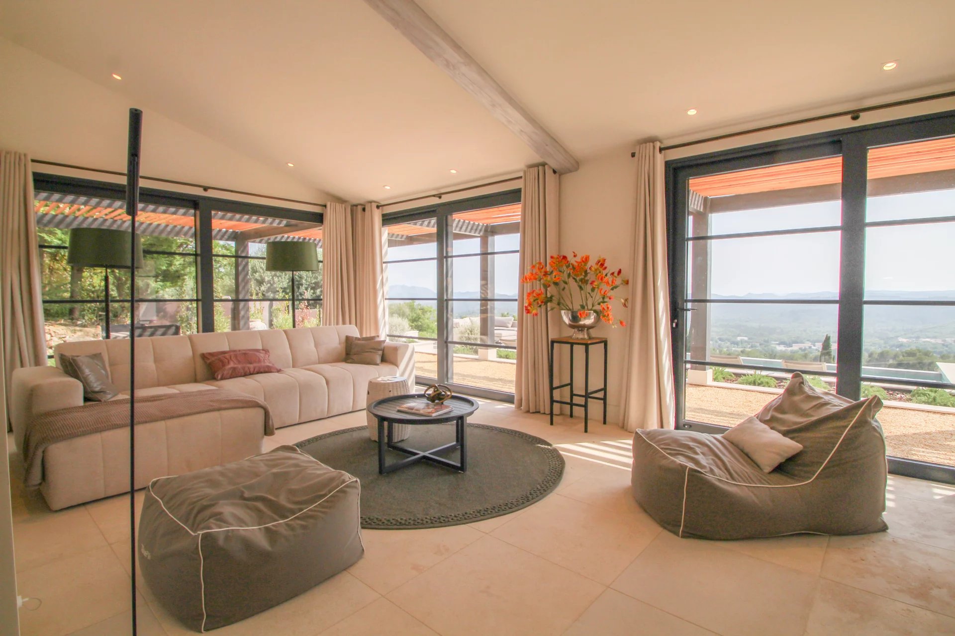 Provence - Var: luxe, lichte villa (5 sk, 3 bk) in nieuwstaat met gastenstudio, infinity pool en adembenemend panoramisch uitzicht op de omgeving; omheinde tuin van ruim 4.600 m² op 5 minuten van idyllisch Provençaals stadje en 30 minuten van zee