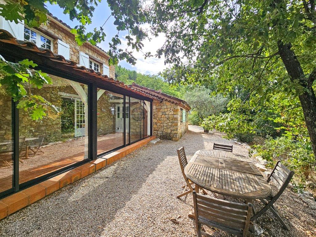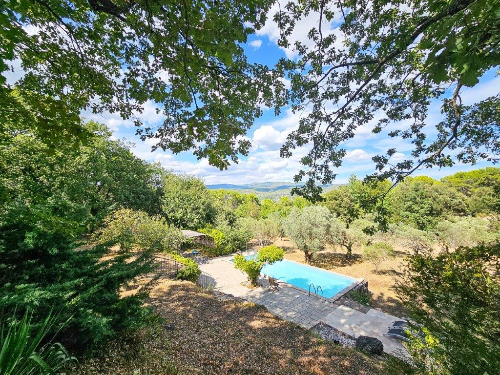 Provençaalse, natuurstenen woning midden van de natuur met zwembad en panoramisch uitzicht op de heuvelachtige omgeving. Deze authentieke woning met oorspronkelijke basis uit de negentiende eeuw is gelegen in een zeer rustige maar niet geïsoleerde omgeving midden op de 4 hectare eigen grond. Mooie zwembadhoek met uitzicht op de olijfgaard en een adembenemend panorama.