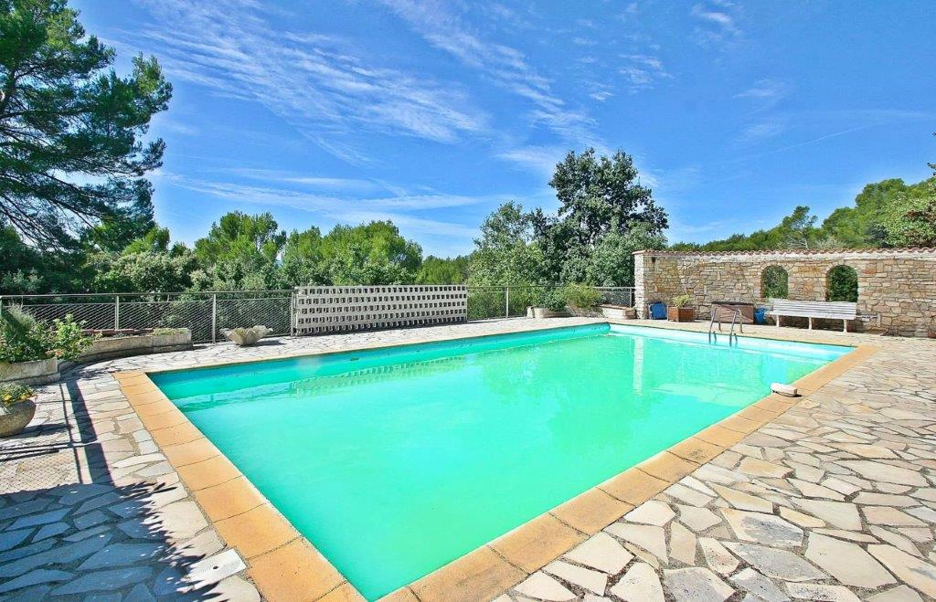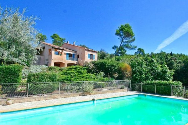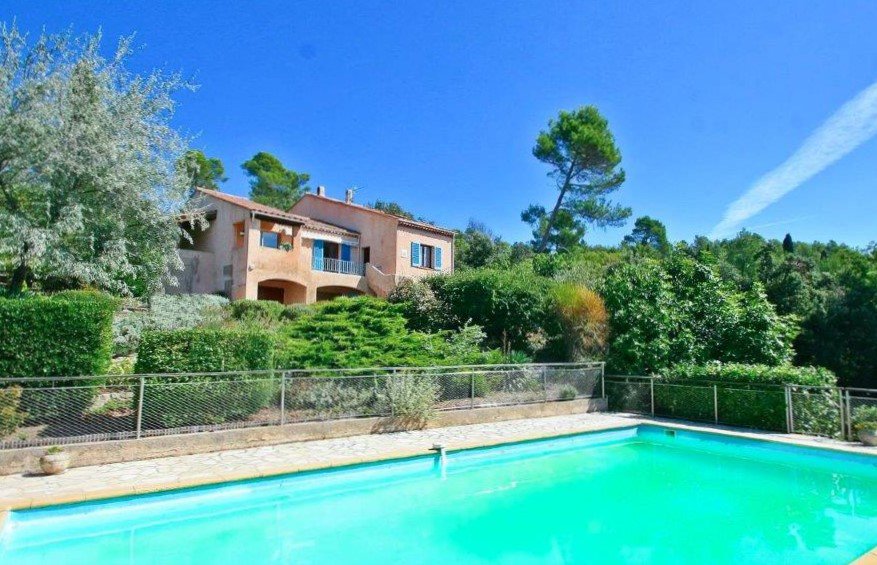 Provence - Var: Panoramisch uitzicht op het zuiden voor deze ruime Provençaalse villa (4 sk, 2 bk), gastenverblijf, zwembad van 11 bij 5 meter en een garage, hoger gelegen op 3.625 m² op loopafstand van centrum stadje en 35 minuten van de Middellandse zee