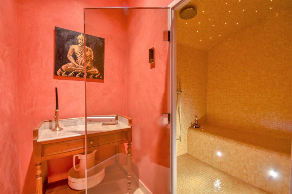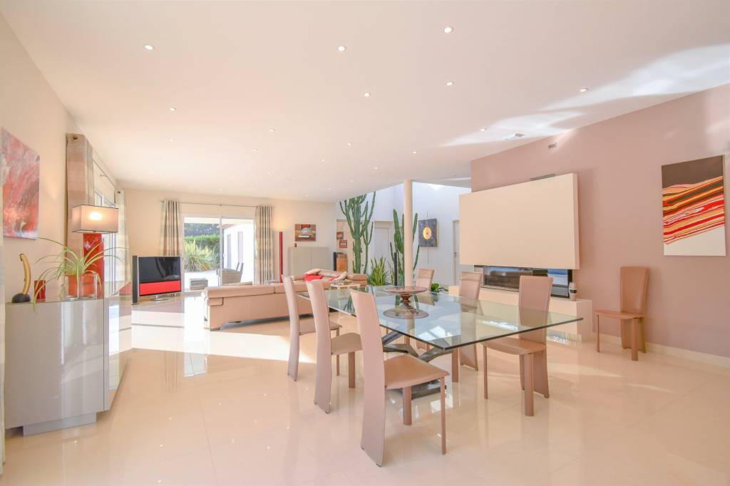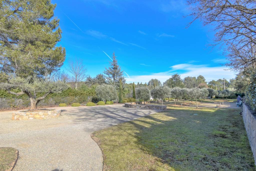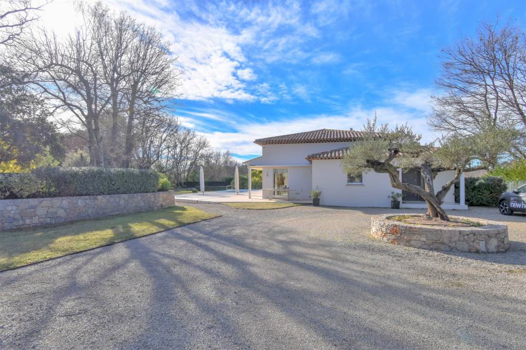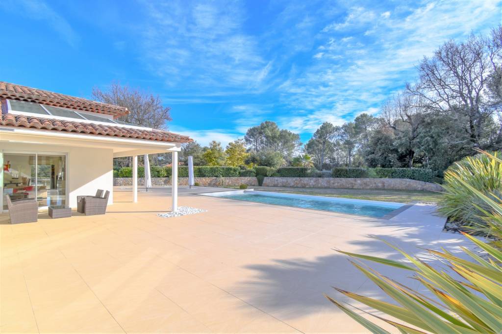 Provence - Var: prachtige, gelijkvloerse Provençaalse villa (4 sk, 3 bk) gebouwd in 2011, met hammam, overloopzwembad van 11 bij 5 meter, fraai aangelegd terrein van 3.900 m² en grote garage, op loopafstand van een geliefd stadje op 3 kwartier van zee