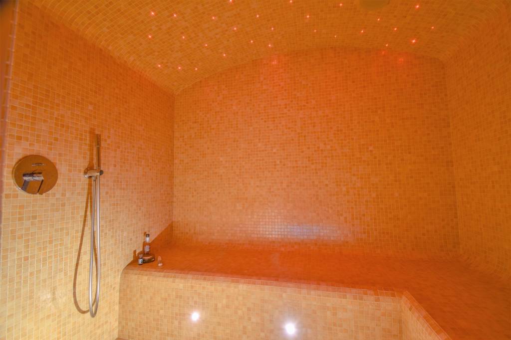 De villa is geheel gelijkvloers en bestaat uit een grote entree (14 m²) met een toilet en garderobe, een woon-/eetkamer van 83 m² met een gashaard, een volledig uitgeruste keuken (13 m²) met een bijkeuken (6 m²) allemaal met toegang tot een terras op het zuidwesten. Tevens is er een wasruimte (6 m²), een hammam (7 m²), een hoofdslaapkamer (16 m²) met eigen badkamer (10 m²) met o.a. douche en een inloopkast. Tweede slaapkamer (11 m²) met een eigen badkamer met o.a. douche en nog eens 2 slaapkamers (11 m² elk) met een gedeelde badkamer.