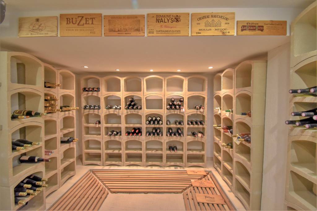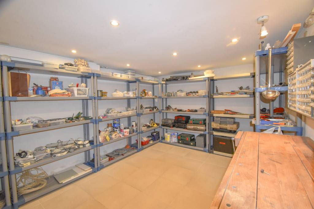 De onderverdieping (souterrain) van 100 m² bevat diverse opslagruimtes, een werkplaats, een technische ruimte en een wijnkelder.