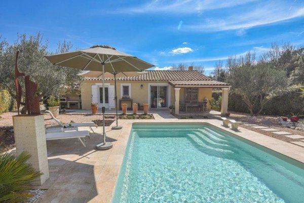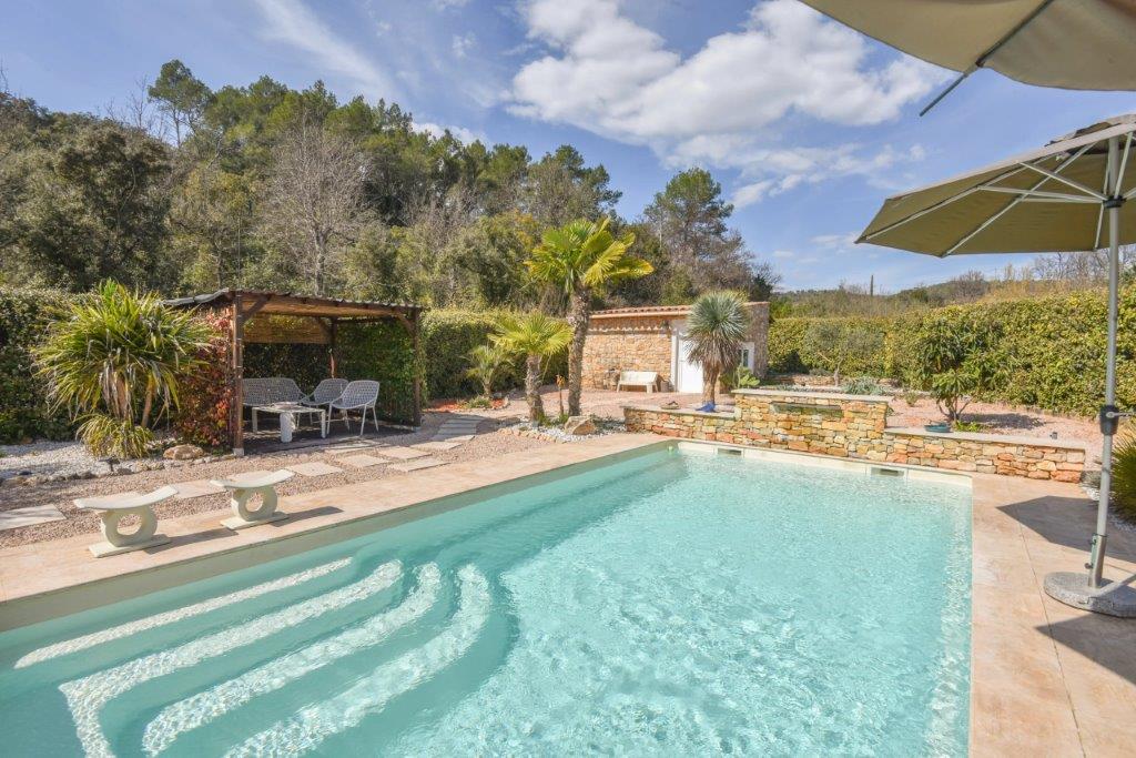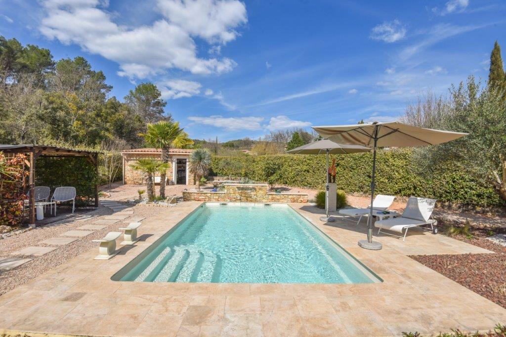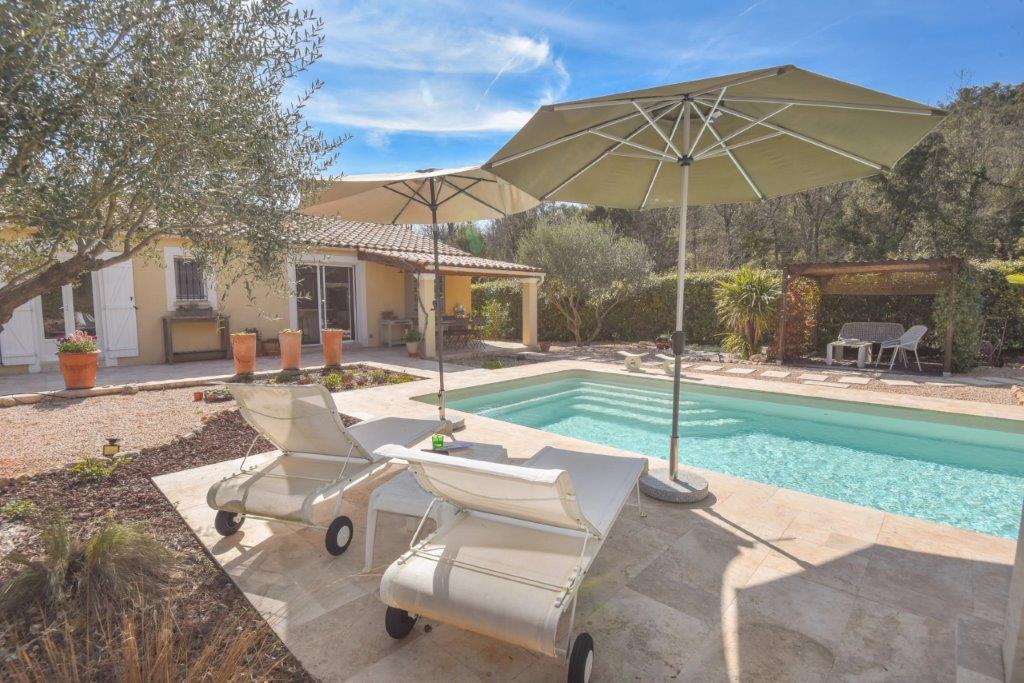 Provence - Var: praktische, volledig gelijkvloerse woning (4 sk, 2 bk), gerenoveerd in 2022, met verwarmd zwembad, overdekt terras en zomerkeuken, rustig gelegen op 1.320 m² vlak terrein op korte afstand van centrum en 40 minuten van zee